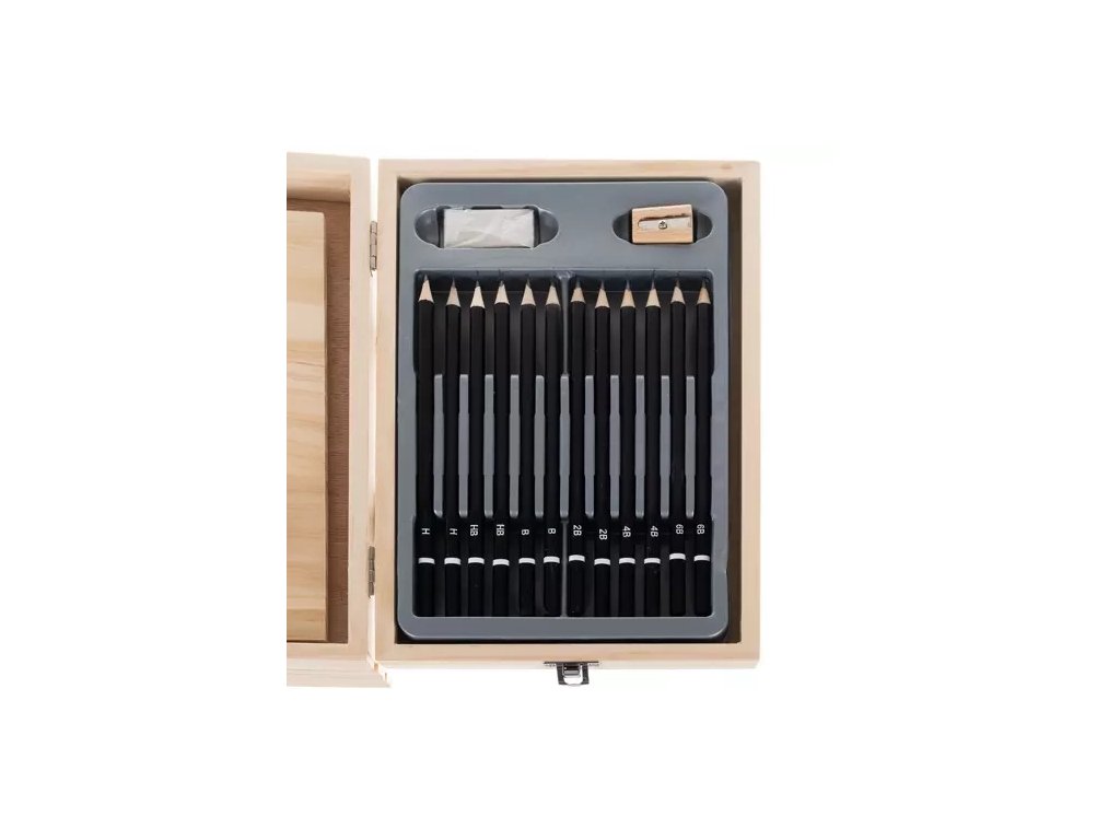 - 12 x tužky různé měkkosti (2xV, 2HB, 2xB, 2x2B, 2x4B, 2x6B)