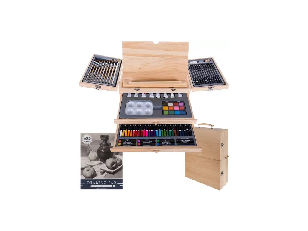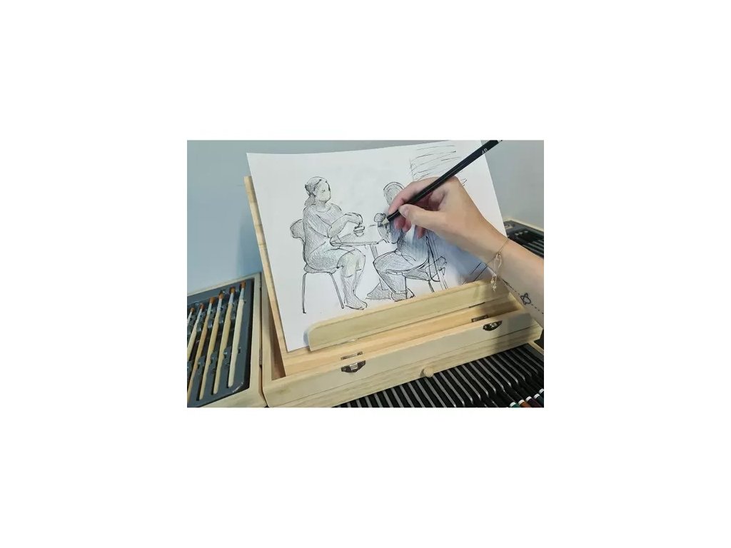 Umělecká malířská sada je obrovský výběr až 83 prvků, díky kterým můžete vytvářet mimořádně kreativní, sofistikovaná a originální umělecká díla. Malířská sada obsahuje mnoho prvků, včetně: barvy, pastelky, tužky, stojan a mnoho dalšího příslušenství. S tak obrovským výběrem prvků rozvinete svou fantazii a jistě vytvoříte kreativní díla.