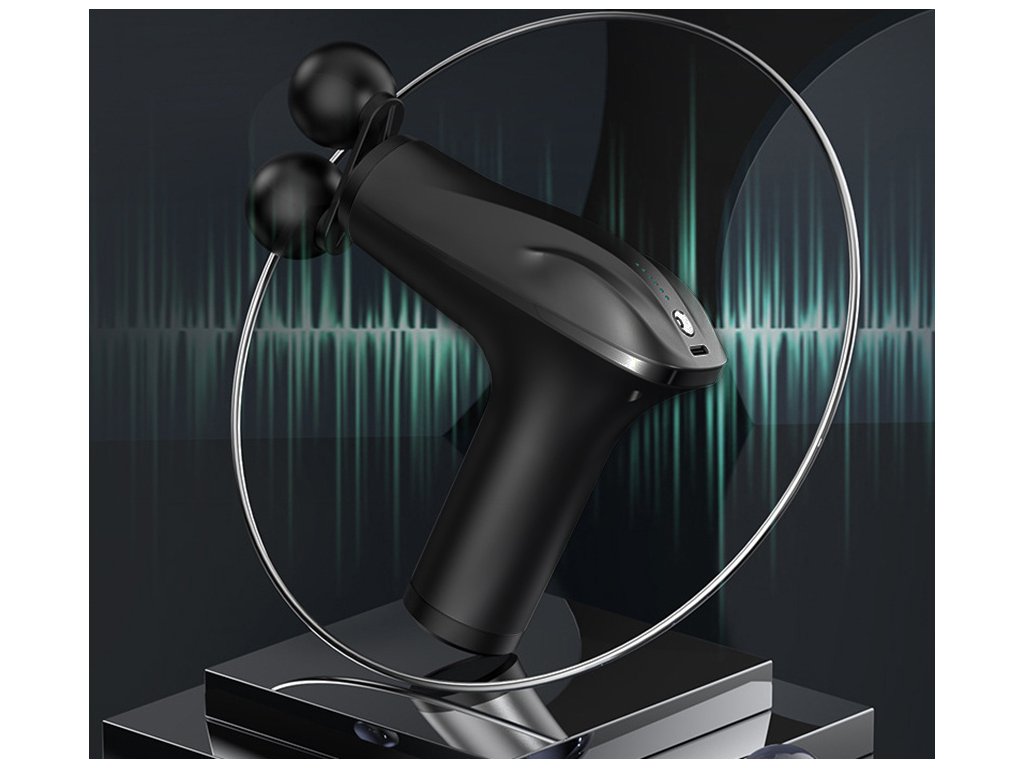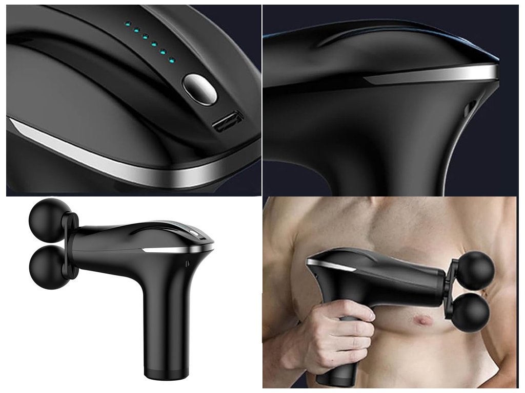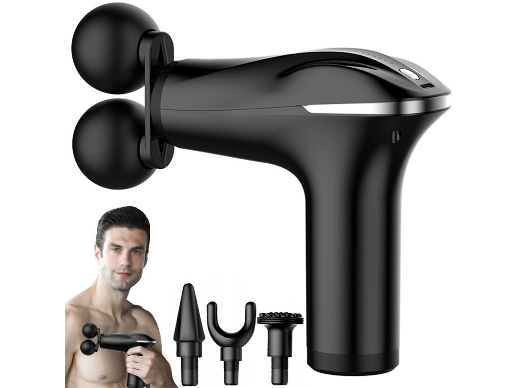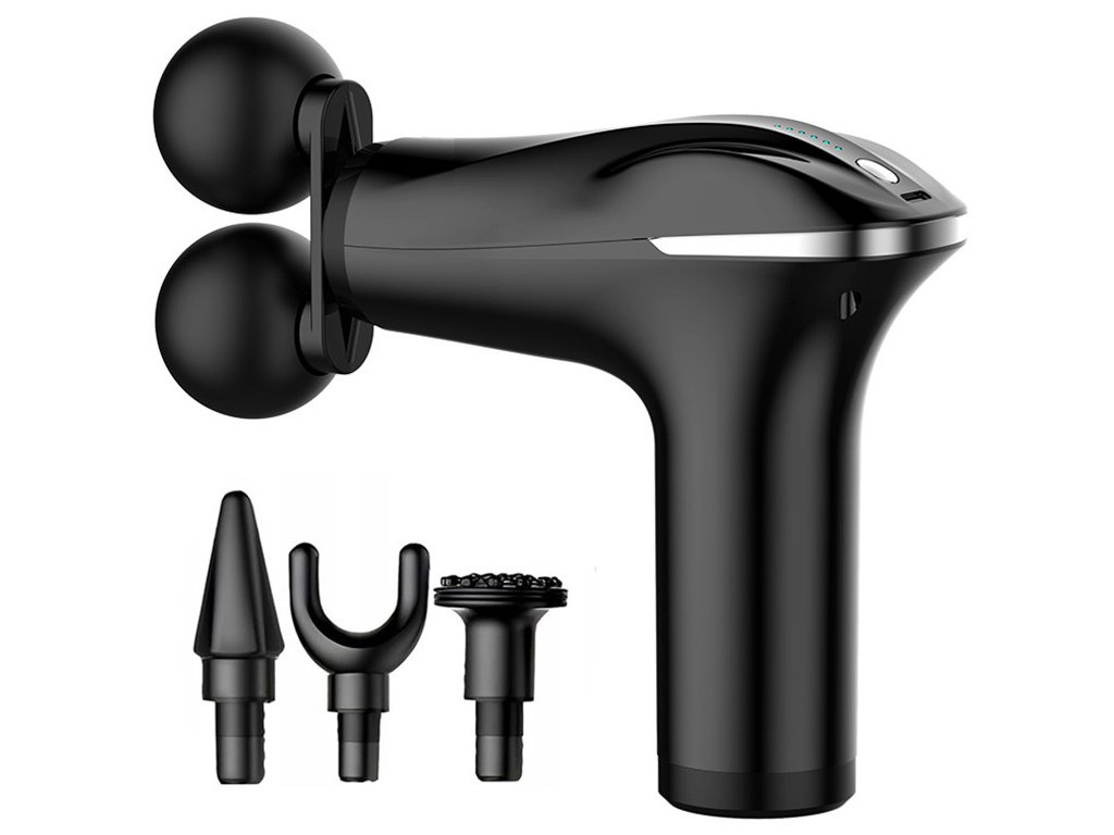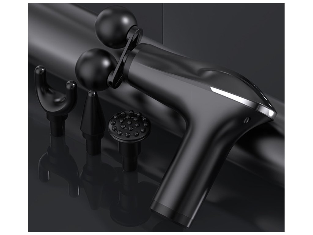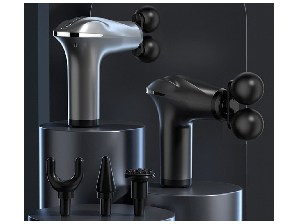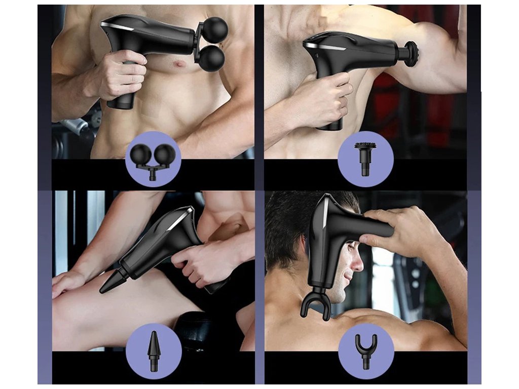Masážní přístroj byl navržen v ergonomickém tvar u pistole, takže perfektně padne do ruky. Obsahuje 4 různé 3 hroty , z nichž každý je určen pro jinou svalovou partii.