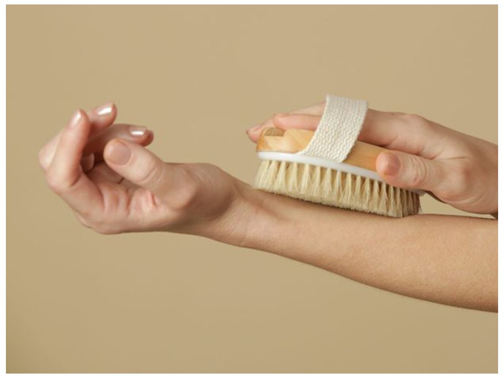✅ Poté exfoliujte paže, rovněž od rukou směrem k srdci. Zvláštní pozornost věnujte kartáčování pokožky v podpaží a všech oblastí s lymfatickými uzlinami.