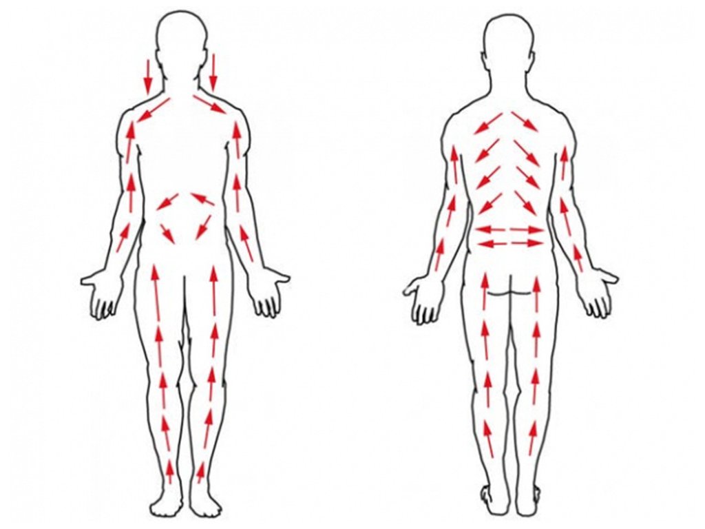 Všechny pohyby při masáži by měly být obvykle prováděny ve směru srdce a v každé oblasti několikrát opakovány.