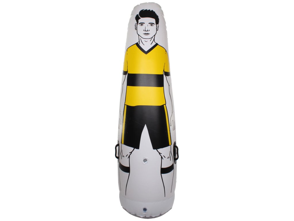 Nafukovací figurína Merco Air Dummy může být využitá pro trénink celé řady kolektivních sportů. Pro fotbalisty například poslouží Air Dummy k nácviku přesnosti přímých kopů, pro trénink rohových kopů i jako trojrozměrná simulace opravdových hráčů v nejrůznějších herních situacích. Nafukovací panák kruhového půdorysu je vyrobený ze 100% PVC s oboustranným potiskem postavy sportovce. Výhodou tohoto nafukovacího provedení je snadné uskladnění mezi tréninky, dlouhodobá odolnost proti všem tupým úderům a minimální riziko zranění skutečného hráče při kontaktu s figurínou. Aby byla figurína stabilní za všech povětrnostních podmínek i při plném tréninkovém zatížení, naplňte základnu před nafouknutím vodou nebo jemným pískem. Z tohoto důvodu je také důležité figurínu na venkovních sportovištích vždy používat při teplotách nad 5 °C, aby nedošlo k zamrznutí zátěže. Výška panáka Merco Air Dummy v plně nafouknutém stavu je 175 cm, průměr kruhové základny má 50 cm a jeho hmotnost bez zátěže je 1,65 kg. Ať už se věnujete fotbalu, basketbalu, házené nebo jinému podobnému kolektivnímu sportu a zároveň chcete Váš trénink pojmout zase o něco zodpovědněji, pak Vaše sportoviště doplňte touto praktickou pomůckou.Doplňkové parametry