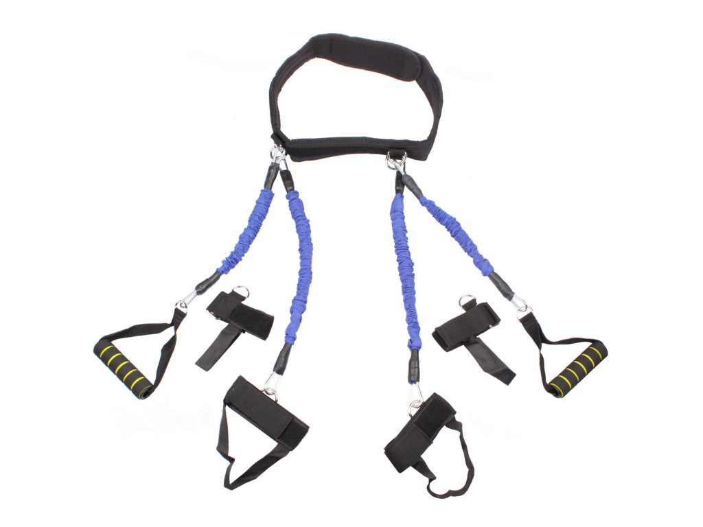 Posilovací sada odporových gum Boxing Band Set je určená pro efektivní trénink boxerů a zápasníků. Všestranný rozvoj ovšem zařídí i pro další sportovní odvětví. Ať se jedná o fotbal, hokej, volejbal nebo fitness, tyto expandery značně ztíží váš trénink a vy tak můžete své výkony posouvat opět dále. Součástí balení jsou celkem čtyři expandery dvou velikostí, 2 úchyty na dolní končetiny, 2 úchyty na horní končetiny, 2 rukojetě a bederní pás pro kompletní upevnění expanderů. Pás i úchyty jsou na suchý zip, a proto si je můžete individuálně nastavit podle potřeby. Pomocí této tréninkové pomůcky odcvičíte celé tělo, nebo se můžete soustředit jen na jednotlivé svalové partie. Pomůcka je vhodná pro muže i ženy. Vybrat si můžete z několika barevných provedení a zátěží. Zelené a žluté odporové gumy odpovídají celkovému odporu 45 kg a modré s červenými 55 kg odporu. Délka expanderů: 35 cm a 25 cm Součást balení: 4x expander, 4x manžeta pro uchycení, 2x rukojeť, 1x bederní pás, stahovací sáčekDoplňkové parametry