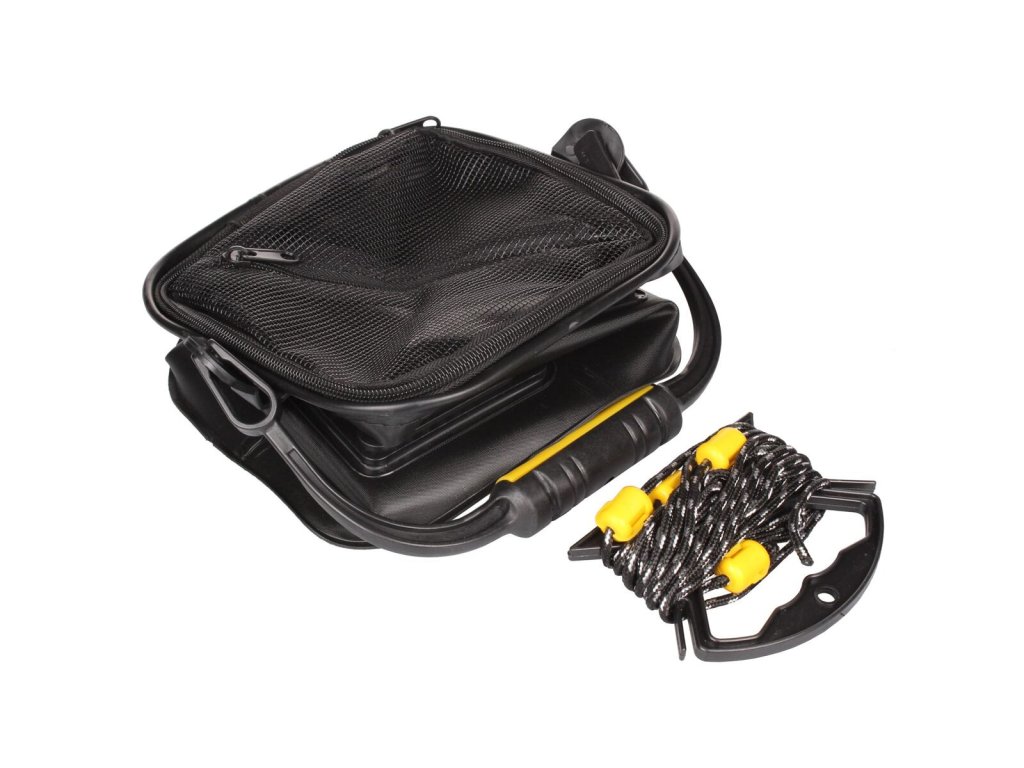 Skládací rybářské vědro Merco Bucket Pro je vyrobené z voděodolného EVA materiálu a slouží například pro přenos užitkové vody, polévání úlovků k přípravě krmení apod. Toto vědro má navíc pevnou rukojeť pro snadnější přenášení a manipulaci. Horní stranu tvoří síťovina uzavíratelná na klasický zip. Díky svým malým rozměrům po složení vědro lehce zabalíte do batohu a přenesete s ostatním vybavením k vodě. Součástí je také provázek s délkou 5 m a plastovým madlem pro nabírání vody i z méně dostupnějšího místa. - materiál: EVA - navíc s pevnou plastovou rukojetí - rozměry: 20 x 20 x 20 cm - objem: 8 litrů - hmotnost: cca 0,35 kg - délka lanka: 5 mDoplňkové parametry