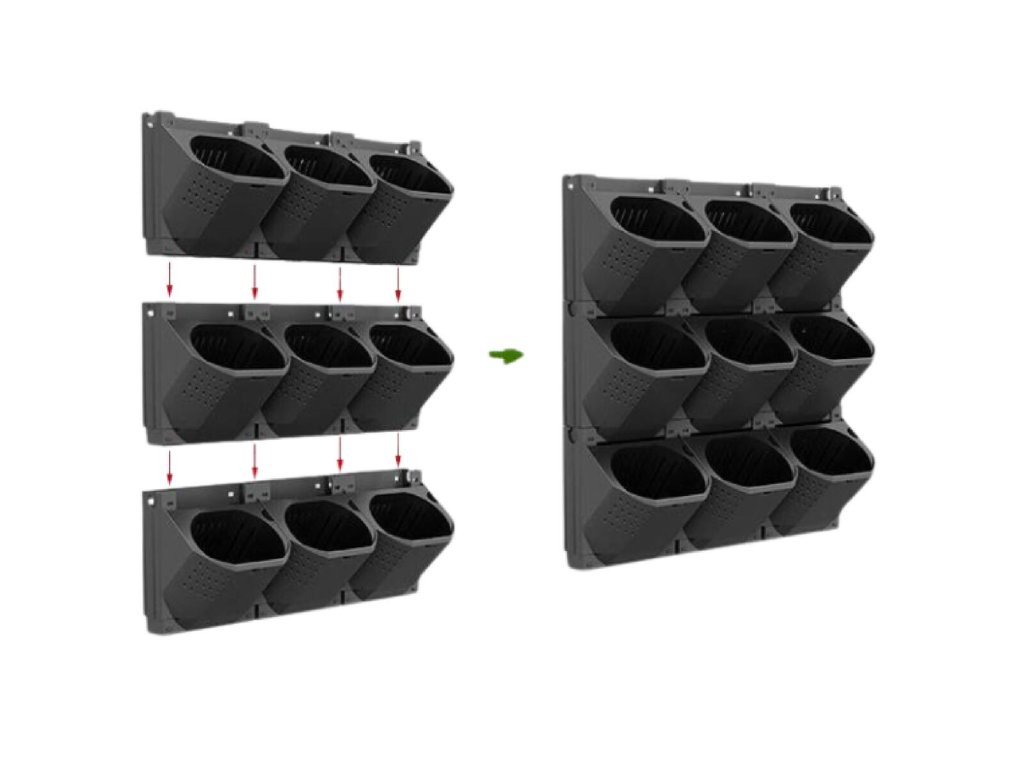 Plastový květináč na zeď Merco Decor je ideálním řešením pro milovníky rostlin, kteří chtějí oživit svůj domov nebo zahradu. Květináč je vyrobený z odolného a lehkého plastu. Více kusů můžete k sobě lehce vertikálně "přicvaknout" a vytvořit si tak větší set. Květináč se instaluje přímo na stěnu nebo se může zavěsit na konstrukci (viz obrázky). Montážní materiál ani konstrukce nejsou součástí balení. Doporučujeme spíše pro venkovní použití, na zahradě, balkoně nebo terase. Balení obsahuje 1 kus. Vytvořte si jedinečnou zelenou stěnu plnou vašich oblíbených rostlin – bylinek, květin či sukulentů. Perfektní volba pro ty, kteří chtějí ušetřit místo a zároveň si užít krásu zeleně po celý rok. - balení: 1 ks - materiál: PP - celkové rozměry: 49 x 19 x 14,5 cm (šířka x výška x hloubka) - vnitřní rozměry jednoho dílu: 14 x 10,5 x 10 cm - hmotnost: cca 720 gDoplňkové parametry