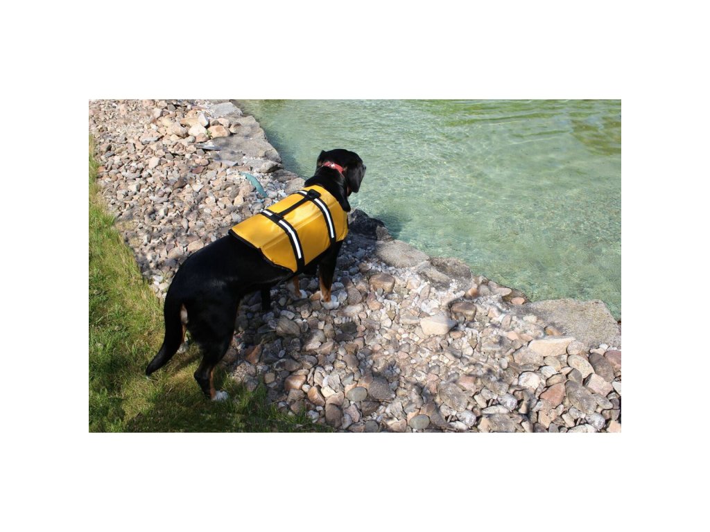 Užívat si léto a nemít obavy o svého čtyřnohého mazlíčka je sen každého starostlivého páníčka. Dog Swimmer plovací vesta pro psy vám ušetří starost o vašeho pejska, když víte, že není zrovna zdatný plavec. Vesta je vyrobená z 90% PVC a 10% Nylonu. Má jednoduché zapínání díky nastavitelným třem přezkám a suchému zipu kolem hrudi psa. Horní část vesty je opatřena světlo-odrážejícími prvky pro lepší viditelnost ve tmě, madlem k přenosu a plastovým očkem k připnutí vodítka. S vestou Dog Swimmer bude váš mazlíček lehce nadnášen nad vodou a může si tak lépe zvyknout na vodní prostředí. Vestu nabízíme v několika barevných provedení a velikostech. Velikost: XS délka zad 20 cm obvod krku 25-35 cm obvod hrudníku 30-42 cm vhodné pro domácí mazlíčky o hmotnosti 2,5-4 kg Velikost: S délka zad 25 cm obvod krku 36-47 cm obvod hrudníku 41-53 cm vhodné pro zvířata o hmotnosti 4-7 kg Velikost: M délka zad 30 cm obvod krku 40-48 cm obvod hrudníku 41-63 cm vhodné pro domácí mazlíčky 7-10 kg Velikost: L délka zad 35 cm obvod krku 42-54 cm obvod hrudníku 50-75 cm vhodné pro domácí zvířata 10-20 kg Velikost: XL délka zad 45 cm obvod krku 50-71 cm obvod hrudníku 70-95 cm vhodné pro domácí zvířata 20-35 kg Velikost: XXL délka zad 50 cm obvod krku 62-90 cm obvod hrudníku 88-124 cm vhodné pro domácí zvířata 35-45 kgDoplňkové parametry