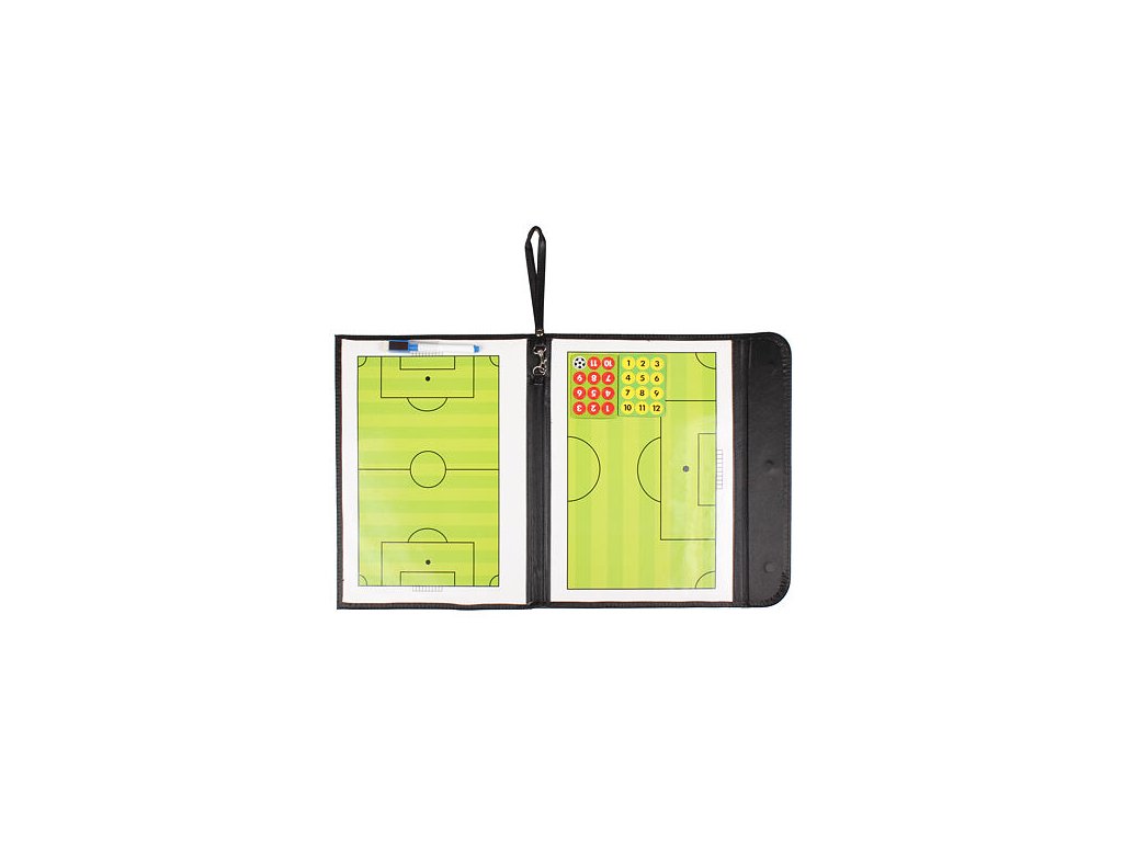 Trenérská tabule na fotbal je nezbytný doplněk každého fotbalového trenéra napříč všemi soutěžemi. Taktická fotbalová tabule Merco FOTBAL 38 jsou dvě magnetické desky s barevným provedením poloviny a celého fotbalového hřiště v černých deskách ze syntetické kůže. Součástí fotbalové tabule Merco FOTBAL 38 jsou dvě sady magnetů, popisovač a řemínek na ruku, aby v průběhu zápasu byly desky vždy při ruce. rozměr: 32 x 24 cm / 32 x 54 cmDoplňkové parametry