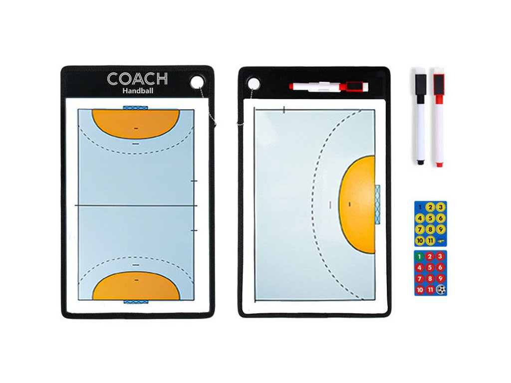 Merco Handball 38 patří mezi základní vybavení každého trenéra házené a slouží pro demonstrování a plánování herních strategií. Pro rozmístění hráčů v poli využijete dvě sady odlišně barevných magnetů s čísly a pro další tahy a znázornění pohybů hráčů popisovač s houbičkou. Magnetická tabule nabízí z jedné strany náhled na celé hřiště a z druhé strany na polovinu hřiště. Taktická deska Merco Handball 38 je nejsnazší a nejrychlejší cesta pro vaše přesné herní pokyny hráčům kdykoliv během zápasu! - rozměry tabule: 38 x 23 cm - hmotnost balení: cca 0,4 kgDoplňkové parametry