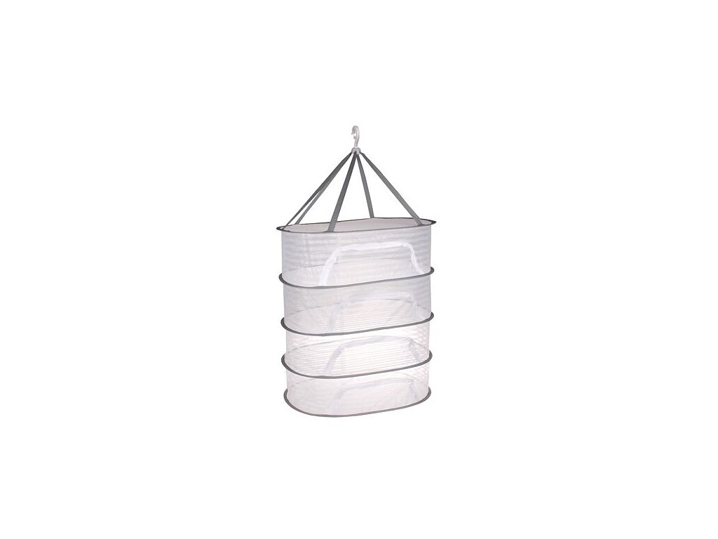 Závěsná sušící síť Multifunctional 4 nabízí jednoduché řešení pro sušení bylinek, květin, ovoce a hub. Síť oválného tvaru o rozměrech 40 x 60 cm a výšce jednoho sušicího patra cca 20 cm (4 patra celkem 85 cm) vytváří dostatečný prostor pro sušení rostlin. Síť snadno a rychle přichytíte za horní plastový háček, který na textilních popruzích drží síťku. Výhodou této skládací sítě o čtyřech patrech je přístup z boku na klasický zip. Sušte bylinky a rostliny v pohodlí domova se sušící sítí Multifunctional 4. Parametry: - šířka: 40 cm - délka: 60 cm - výška: 85 cm - hmotnost: 500 g - materiál: polyesterová síťovina, ocelové kroužky, plastová karabina - výhody: úspora prostoru, samostatná patra, jednoduché uskladněníDoplňkové parametry