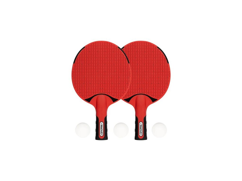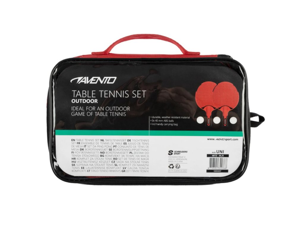 Pingpongový set Avento Outdoor 46TZ je speciálně navržený pro venkovní hru. Sada obsahuje dvě pálky, které jsou vyrobené z odolného PP materiálu, díky kterému jsou voděodolné a vy tak můžete hrát i za horšího počasí. Anatomické rukojeti poskytují lepší grip a kontrolu během hry. Součástí balení jsou také tři ABS míčky s klasickým průměrem 40 mm. To vše je dodávané v praktickém obalu, díky kterému celou sadu lehce přenesete a uskladníte. - pingpongová sada pro venkovní použití - 2 PP pálky s anatomickými rukojeťmi - 2 mm gumová horní a spodní vrstva pro extra kontrolu - 3 míčky ABS, průměr 40 mm - rozměry balení: 26 x 16 x 5 cm - hmotnost balení: cca 0,45 kgDoplňkové parametry