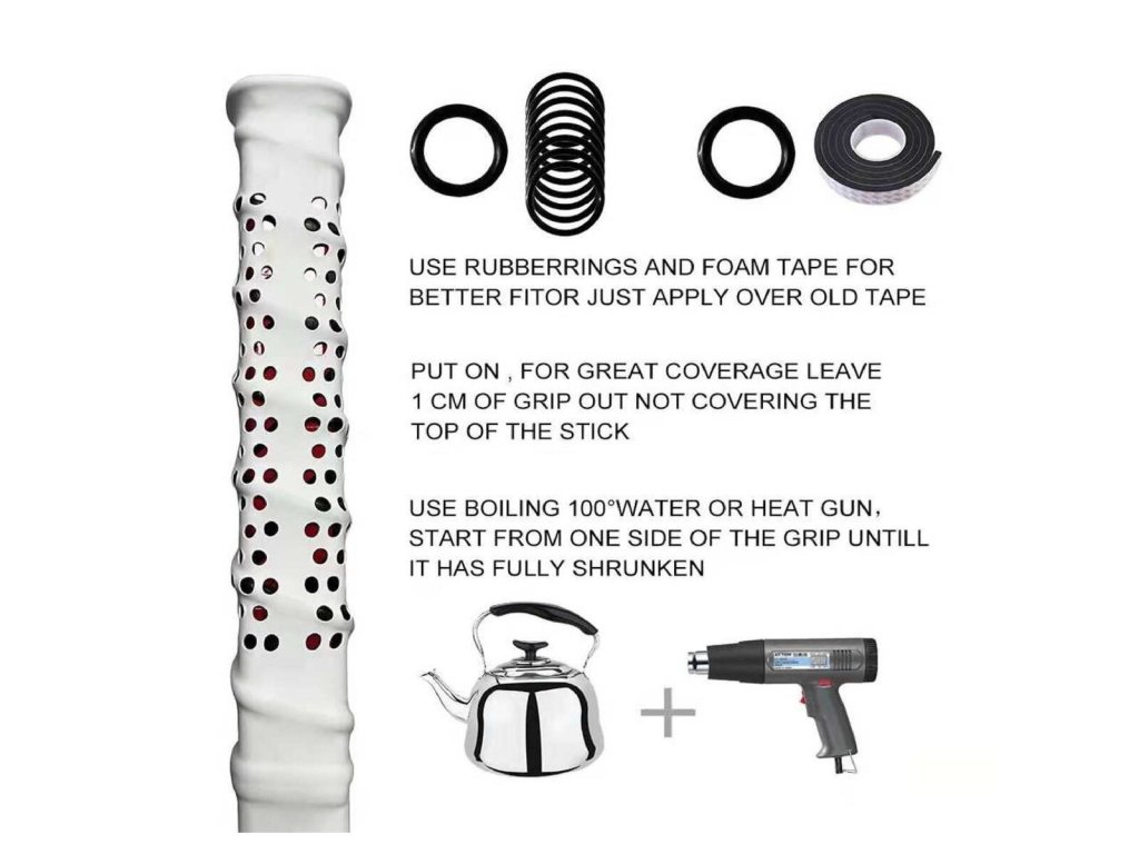 Koncovka na hokejku Merco Perf Shrink Grip nahrazuje klasické textilní omotávky na horní část hokejky a je vhodná pro hráče i brankáře. Polyethylenová koncovka je příjemná na dotek a chrání rukavici proti brzkému opotřebení. S koncovkou budete mít větší kontrolu nad hokejkou. Na konci nechte při nasazování přibližně 3 cm přesah, aby tak koncovka dobře držela na hokejce. Koncovku jednoduše upevníte pomocí přiložených kroužků či pásky a poté doporučujeme použít horkovzdušnou pistoli. Pokud ji nemáte k dispozici, výrobce uvádí také možnost polít vařící vodou pro její stáhnutí. - smrštitelný návlek s perforací - rozměr: 25 x 6.4 cm - materiál: PEDoplňkové parametry