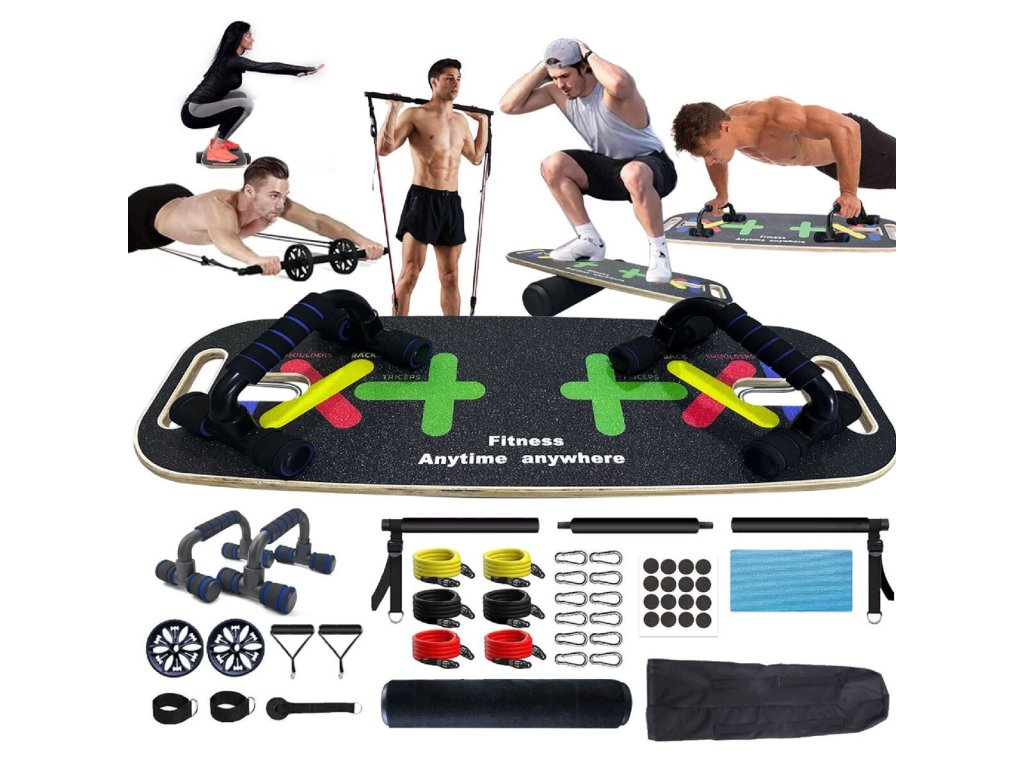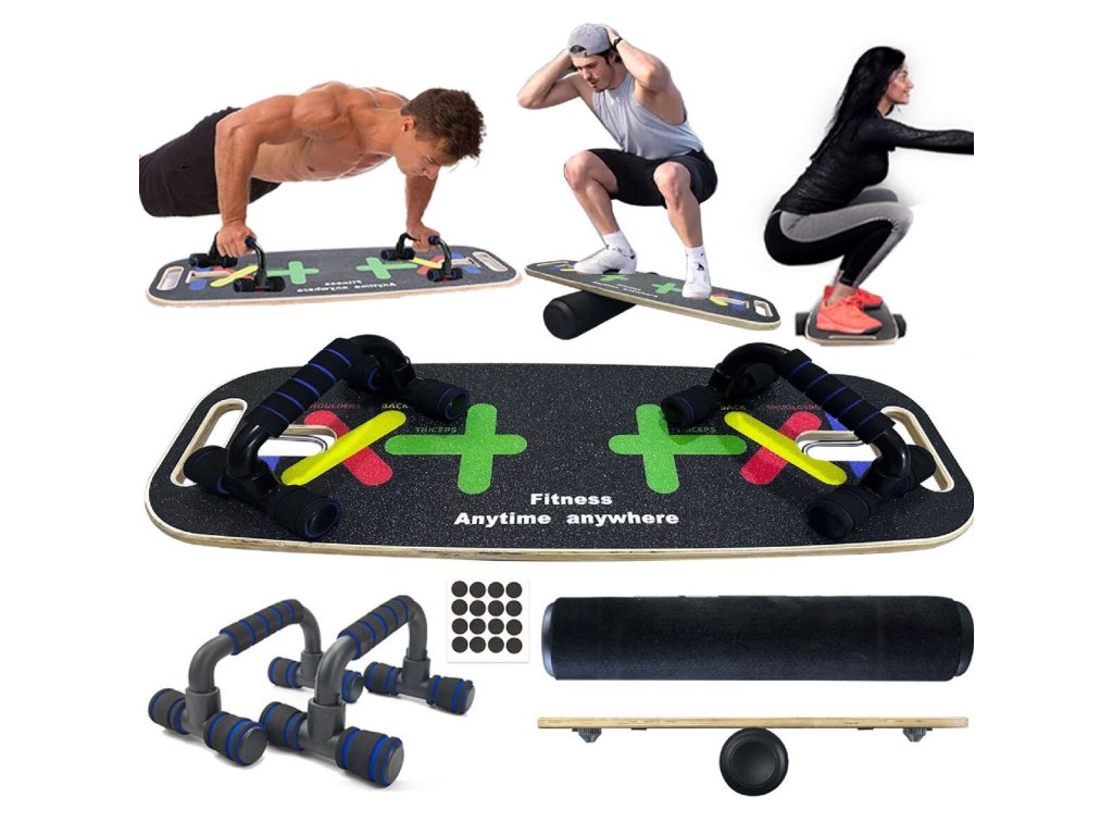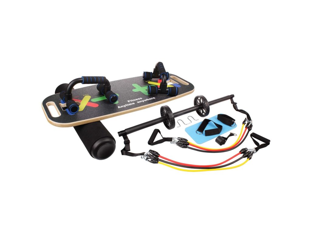 Multifunkční balanční deska Merco Power Core je skvělá tréninková pomůcka pro sportovce, u kterých je důležitá rovnováha. S tímto setem si vytvoříte domácí trénink dle svých potřeb. Cvičení na balanční desce pomáhá při rehabilitaci kolen, kotníků, kyčlí. Posílíte okolní svaly, čímž snížíte riziko zranění těchto kloubů. Vrchní strana balanční desky je potažená protiskluzovou vrstvou. Válec balanční desky lze používat i v interiéru, bez nutnosti použití koberce. Sada dále obsahuje posilovací tyč s gumovými expandery různých odporů, opěrky na kliky, posilovací kolečka, kotvu do dveří a rukojetě. Kotva a rukojetě s použitím gum rozšiřuje variabilitu cvičení. Vytvořte si kompletní trénink a zlepšete si svou fyzickou kondici v pohodlí domova s multifunkční balanční deskou Merco Power Core! - maximální nosnost: 120 kg - hmotnost balení: 6,3 kg - rozměry balení: 76 x 30 x 15 cm - doporučený věk: 9+ - rozměr desky: 74 x 28 x 2 cm (délka x šířka uprostřed x tloušťka) - rozměr válce: 53 x 10 cm (délka x průměr) - hmotnost desky: 2,35 kg - hmotnost válce: 1,2 kg - válec opatřený měkkým filcem - součástí 4 nožičky pro montáž na spodní stranu desky pro stabilitu - 3 sady gumových expanderů - opěrky na kliky - posilovací kolečka s průměrem 15,5 cm - dveřní kotva pro uchycení expanderů - pěnové rukojetě - poutko pro uchycení na dolní nebo horní končetinu - součástí vak pro snadné přenášení a uskladněníDoplňkové parametry