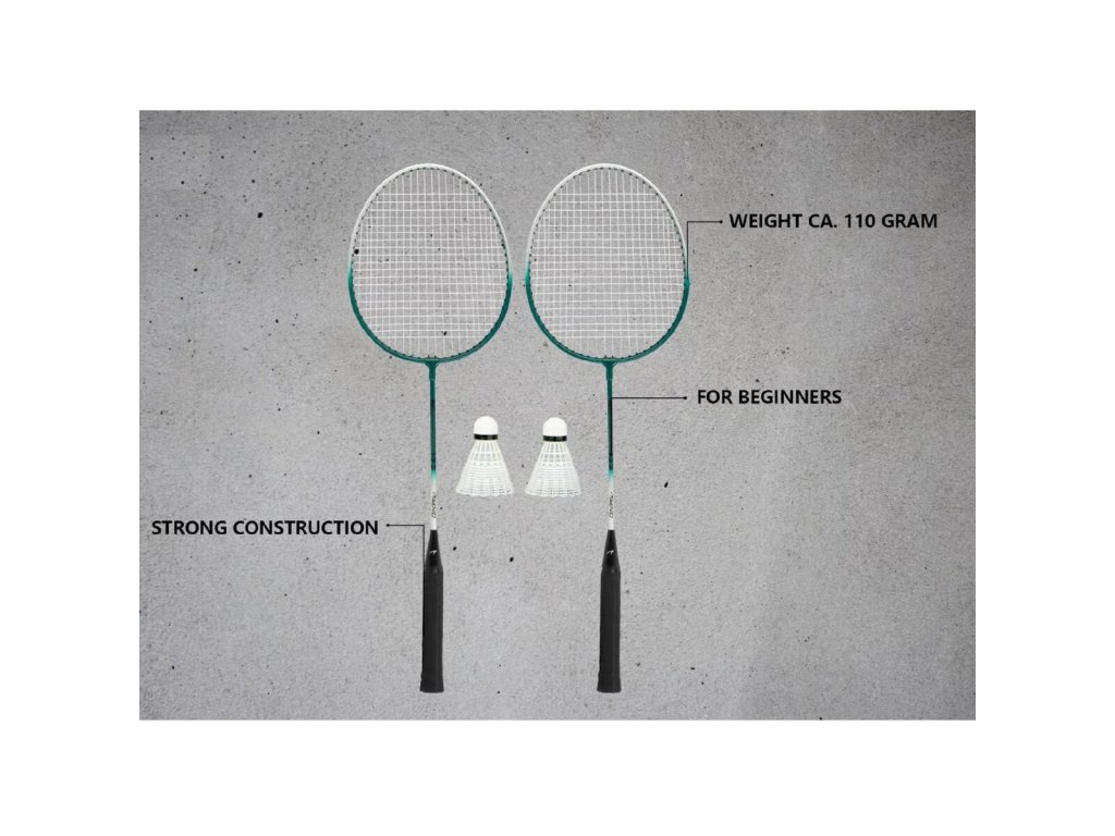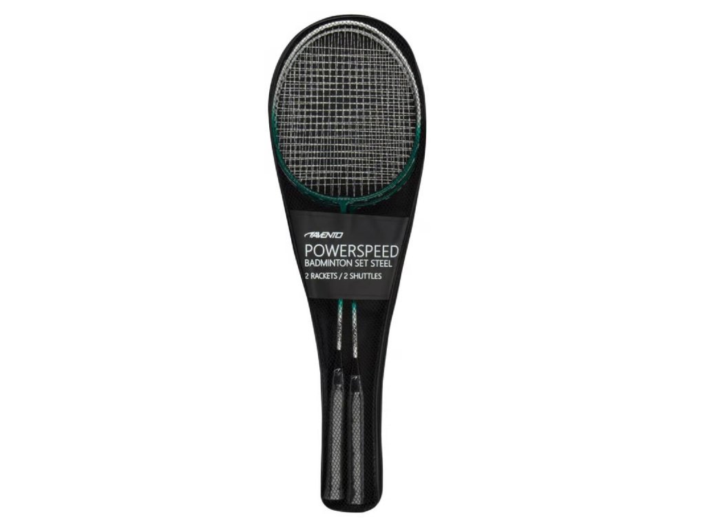 Tento badmintonový set Avento Power Speed je vhodný jak pro začátečníky, tak pro rekreační hráče. Badmintonové rakety jsou vyrobené z pevné tvrzené oceli. Sada se skládá ze 2 raket (65,5 cm dlouhých) a 2 badmintonových míčků z PVC s EVA špičkou. Součástí je i praktický obal, díky kterému celou sadu lehce uskladníte a přenesete kamkoliv s sebou. - sada: 2 rakety + 2 míčky - materiál: ocel - délka rakety: 655 mm - hmotnost rakety: cca 110 g - PU rukojeť s plastovou krytkou - PVC míček s EVA špičkou - přenosná taška z 300D polyesteruDoplňkové parametry