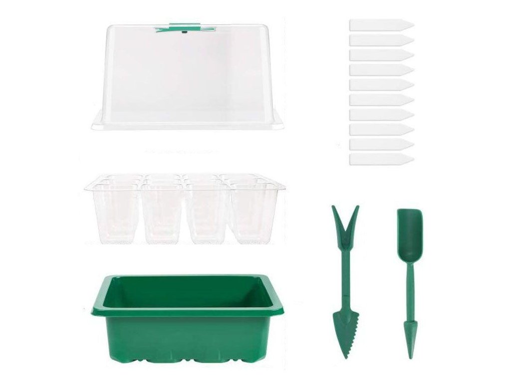 Rádi zahradničíte a pěstujete si vlastní rostlinky ze semínek? Pak je pro vás ideální minipařeniště Seedling Pot 12 Light. Tento malý skleníček se používá pro předpěstování sazenic, řízkování rostlin a klíčení semínek. Seedling Pot 12 Light je vyrobený z PET plastu a skládá se ze zelené podmisky, průhledné vložky na sazenice s otovory pro odtok vody, průhledného víka, na kterém se dá nastavit proudění vzduchu, LED osvětlení, 10 zápichů pro označení sazenic a plastového mini zahradnického náčiní. Každé minipařeniště má 12 otvorů pro sazenice a celý set Seedling Pot 12 obsahuje 5 kusů minipařenišť. Jedno minipařeniště má rozměry 18,5 x 16 x 14,5 cm (ŠxVxD) a velkou výhodou oproti konkurenčním minipařníkům je dostatečně vysoké víko. Návod: 1) Navlhčete zeminu, nejlépe rozprašovačem. 2) Plastovou mini lopatkou naplňte otvory zeminou. 3) Mini sázecím kolíkem vytvořte důlky pro semínka nebo řízky. Semínka umístěte do důlků. 4) Můžete použít bílé zápichy pro označení rostlinek. 5) Pařeniště přiklopte průhledným víkem a zeleným kolečkem nastavte proudění vzduchu (mikroklima). 6) Do zeleného kolečka zapojte USB kabel (a ten poté s adapterem do zásuvky - adapter není součástí balení), tím spustíte světlo. 7) Pravidelně vlhčete zeminu, můžete přidat i hnojivo. 8) Pařeniště umístěte na světlé a teplé místo. 9) Pro vyjmutí sazenic můžete využít druhý přiložený mini nástroj. Tipy: Označte si všechna semínka. Použijte kvalitní zeminu, můžete se tak vyhnout případným škůdcům a plesnivění rostlin. Doporučujeme do každého květníčku zasadit 2-3 semínka, abyste zvýšili šanci na úspěšné pěstování. Před vyjmutím sazenic z květníčků nechte zeminu mírně proschnout, půjdou pak lépe vyjmout. Obsah balení: 5 ks zelených podmisek 5 ks průhledných vložek s květníčky (1 květníček má rozměr 3,8 x 3,8 x 5,5 cm) 5 ks průhledných víček 5 ks koleček s LED světlem pro úpravu mikroklimatu v pařeništi 10 ks štítků na označení rostlin 2 ks mini zahradního náčin 1 ks USB kabelu s 5 koncovkami Materiál: PET plastDoplňkové parametry
