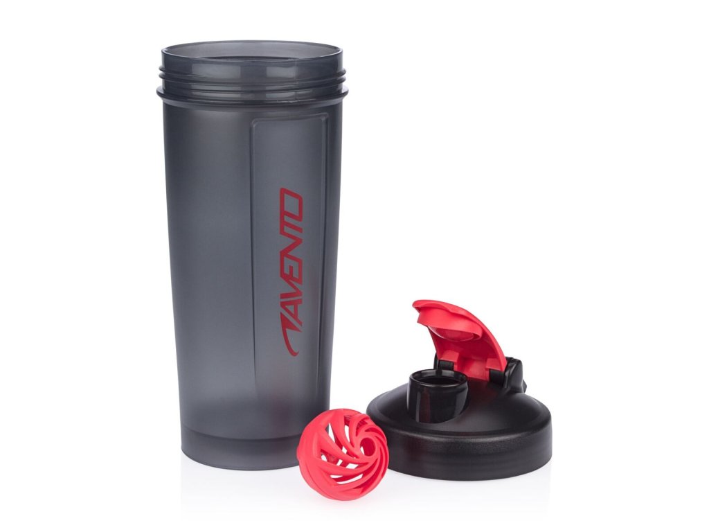 Šejkr je základní pomůcka každého sportovce, který chce mít vždy po ruce namíchaný proteinový nápoj pro co nejlepší sportovní výkon. Díky šejkru Avento Shake Bottle je příprava nápoje rychlá a jednoduchá. Je vyrobený z odolného polypropylenu, jeho celkový objem je 1000 ml, výšku 26,5 cm a hmotnost 200 gramů. Na boku šejkru je ryska od 200 - 1000 ml (6 - 34 oz). Šejkr není vhodný pro horké nápoje.Doplňkové parametry