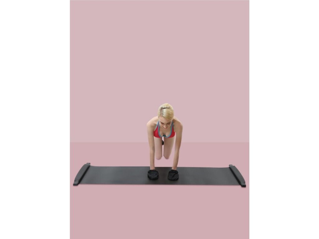 Merco Slidder 1.8 je speciální klouzavá podložka vytvořená pro domácí cvičení a posilování vlastní hmotností. Klouzavá podložka nabízí široké spektrum efektivního cvičení a posílení svalstva celého těla. Součástí balení je deska a dva textilní návleky, které si navlečete na ruce či nohy. Podložku pokládejte vždy na pevný a rovný povrch. Skládací podložka s celkovou délkou 180 cm a šířkou 50 cm má hmotnost pouhých 1,25 kg. Díky tomu je velice skladná a můžete si ji vzít s sebou kdykoliv a kamkoliv. Podložku lze také využít jako trenažér bruslení. Použitím silikonového oleje ve spreji (není součástí balení) lze dosáhnout menšího tření. - materiál: PP/EVA/nylon - obsah: podložka, 2 návleky - celkový rozměr: 180 x 50 cm - rozměry balení: 60 x 15 x 12 kg - hmotnost balení: 1,4 kg - domácí cvičeníDoplňkové parametry