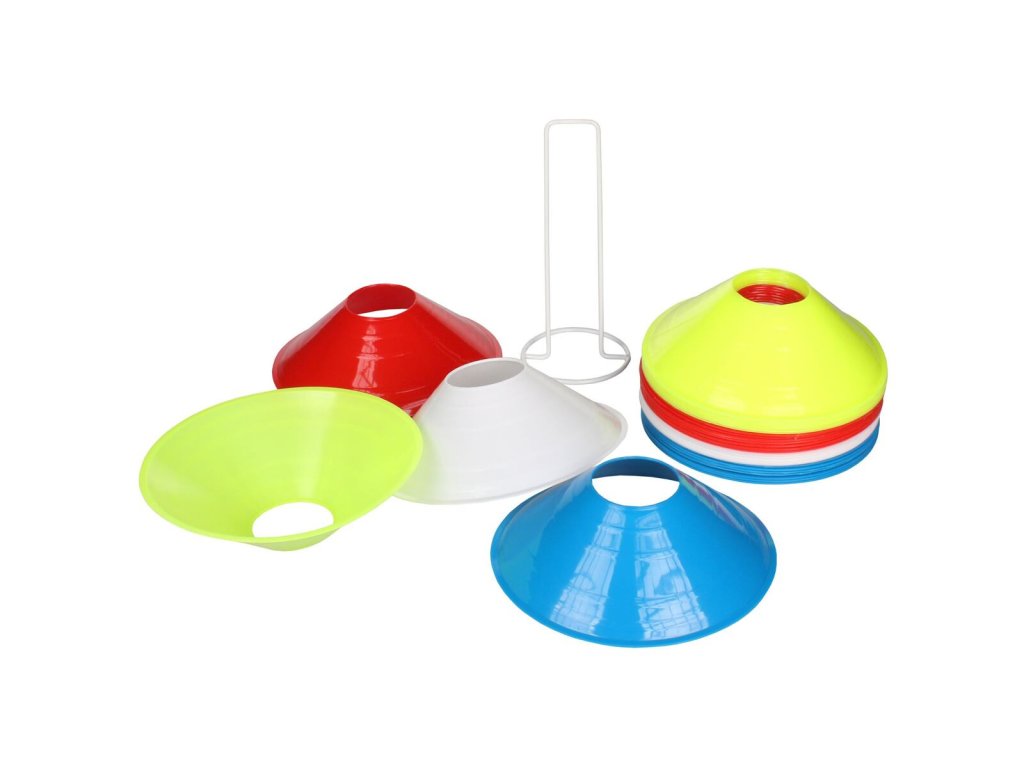Vytyčovací mety Space vyrobené z měkčeného plastu jsou odolné proti prošlápnutí nebo jiné deformaci. Díky pestrým barvám jsou dobře viditelné. Mety slouží jako trenérská pomůcka při organizaci tréninků, ale své využití najdou také při trénování kondice nebo agility. Použít je lze jak při venkovních, tak vnitřních aktivitách. Balení obsahuje stojan (plastový nebo kovový) s 32 kusy met, které jsou rovnoměrně rozděleny do 4 barev. Výška jedné mety je 50 mm a průměr 190 mm.Doplňkové parametry