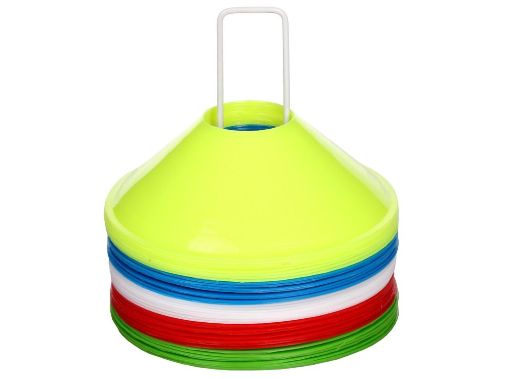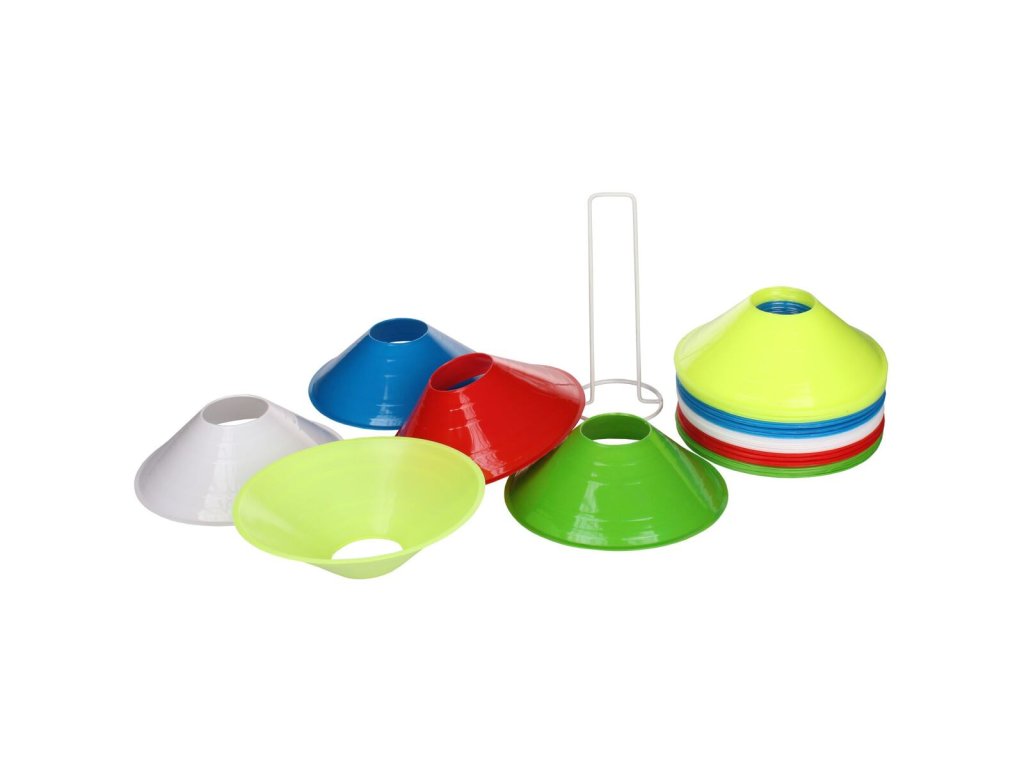 Vytyčovací mety Space vyrobené z měkčeného plastu jsou odolné proti prošlápnutí nebo jiné deformaci. Díky pestrým barvám jsou dobře viditelné. Mety slouží jako trenérská pomůcka při organizaci tréninků, ale své využití najdou také při trénování kondice nebo agility. Použít je lze jak při venkovních, tak vnitřních aktivitách. Balení obsahuje stojan (plastový nebo kovový) se 40 kusy met, které jsou rovnoměrně rozděleny do 5 barev. Výška jedné mety je 50 mm a průměr 190 mm.Doplňkové parametry
