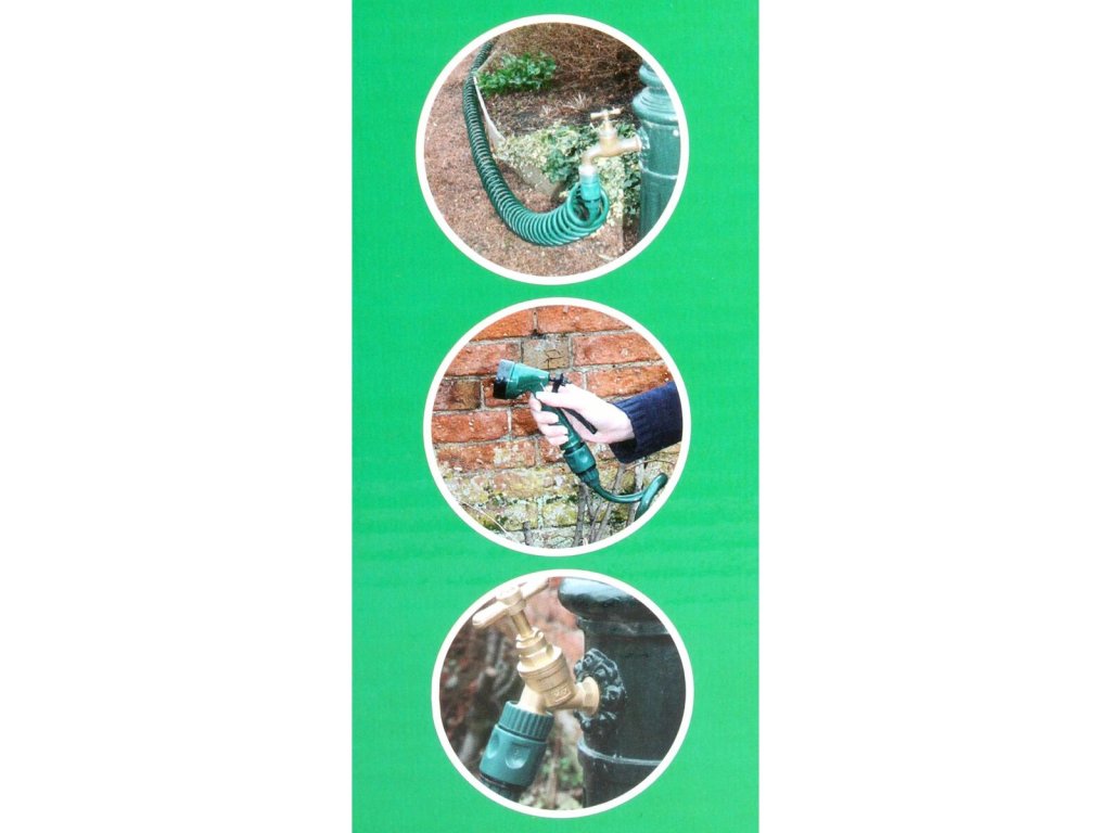 Dostatek vody pro rostliny se řadí na první místo správného zahradníka, který pečuje o svoji zahrádku. Springel spirálová hadice s pistolí je užitečnou pomůckou nejen pro zahradníky, ale také při umývání auta nebo jako osvěžení letních dnů. Zahradní pružinová hadice je vyrobená z EVA materiálu s maximálním natažením 15ti metrů. Hlava hadice je vyrobená z ABS plastu, která se jednoduše zacvakne do hadice. Druhá strana hadice se připojí do zdroje vody. Otočná hlava umožňuje 7 druhů postřiku od rozprašovače, až po normální sprchu. Díky spirálovitě tvořené konstrukci hadice se dostanete i do těžko dostupných míst. Součástí balení jsou dva adaptéry pro různé druhy kohoutků. S hadicí Springel budete na léto vždy připraveni. Parametry: maximální natažení hadice: 15 m druhy postřiku: Shower, Mist, Jet, Flat, Center, Cone, Soaker hmotnost: 1 kg materiál: ABS, EVA, TPRDoplňkové parametry