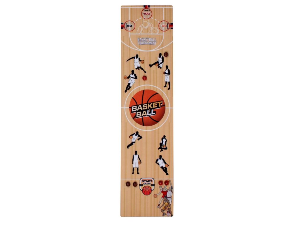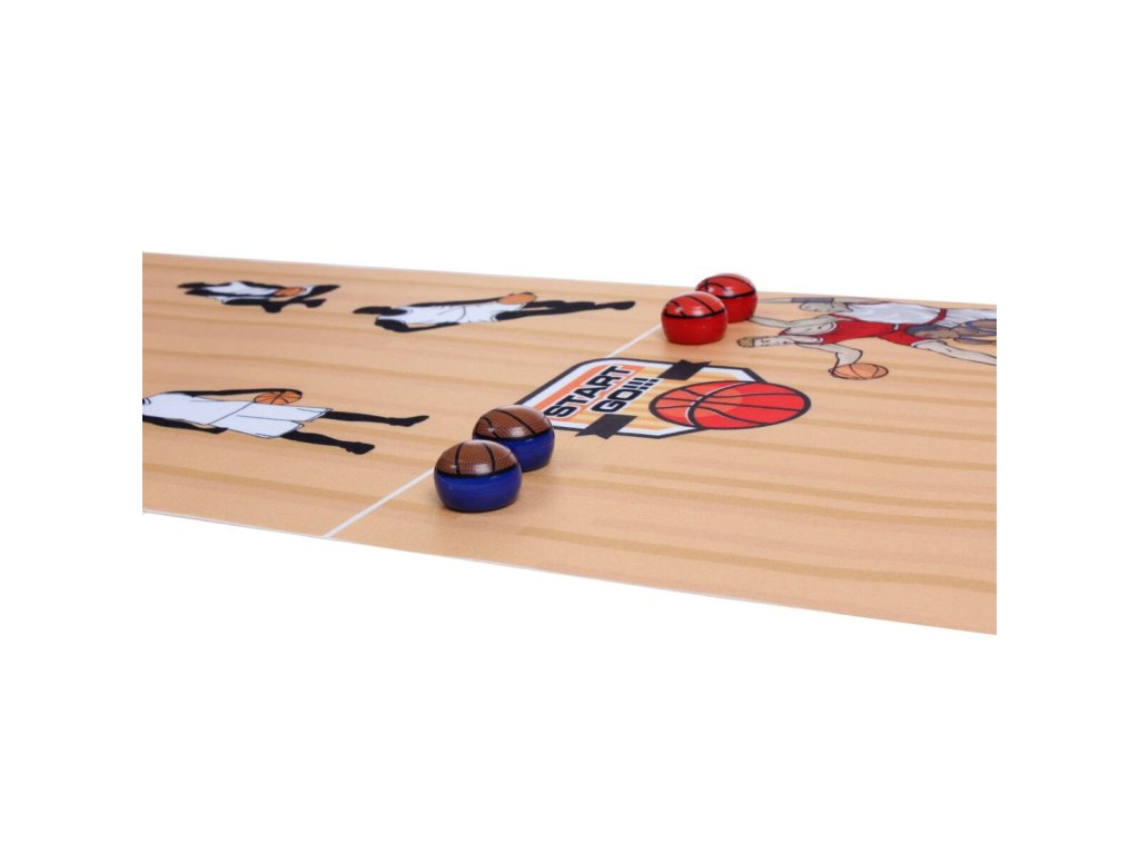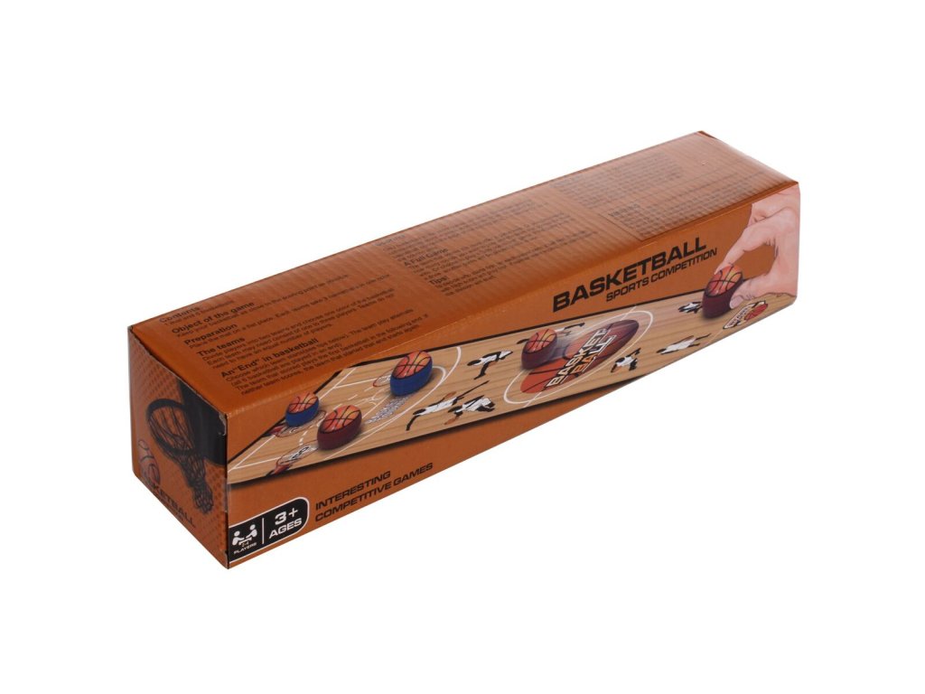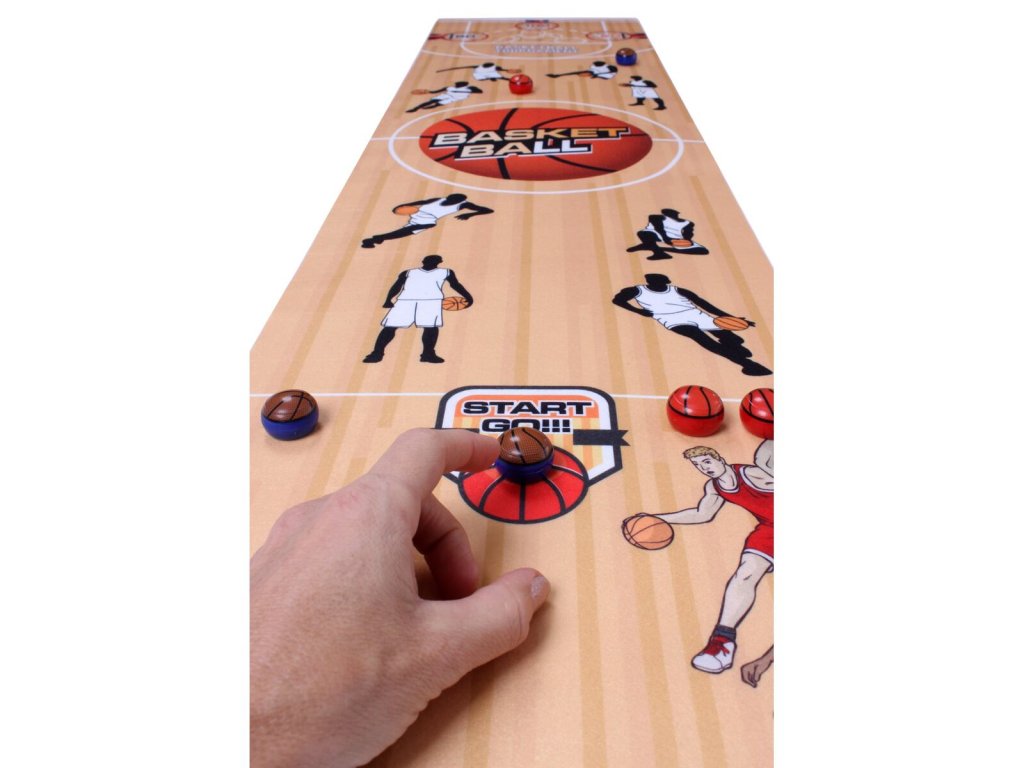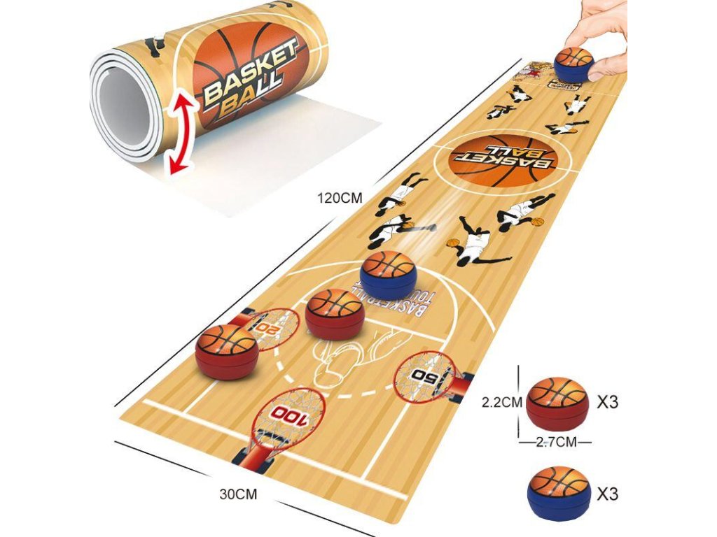 Merco Table Basketball je jednoduchá stolní společenská hra, při které si užijí spoustu zábavy jak děti, tak dospělí. Posouváním hracích kamenů v podobě basketbalových míčů s kovovou kuličkou na spodní části se na filcové hrací ploše trefují basketbalové koše s různými bodovými ohodnoceními. Tým, který trefí více košů a získá více bodů, vyhrává. Hra je uložena v praktickém balení, takže je snadno přenosná a vy si jí můžete na rovném povrchu zahrát kdekoliv a kdykoliv. Užijete si chvíle zábavy i napětí se společenskou hrou Merco Table Basketball. Obsah balení: - 1 x hrací plocha z filcového materiálu, rozměr: 120 x 30 cm - 6 x plastový hrací kámen s kovovou kuličkou. Ve dvou barvách, průměr kamene 2,5 cm - Rozměr balení: 32 x 7 x 7 cm - Váha balení: 230 g Pravidla hry: 1. Rozdělte se na dva týmy, každý tým má 3 hrací kameny ve stejné barvě. 2. Rozlosujte, který tým bude začínat. 3. Posunutím hracího kamene se snažte trefit basketbalové koše vyznačené na hrací ploše. 4. Po každém pokusu se týmy střídají. V další kole začíná ten tým, který v předchozím kole získal více bodů. 5. Body se počítají pouze pokud trefíte oblast koše. Platný je i pokus, když trefíte obroučku koše. 6. Hra končí po použití všech kamenů a spočítáním bodů. Můžete si však zvolit, že budete hrát na více kol a body spočítat až po dohrání všech kol. Vítězí tým s více body. Varianta - obranná hra: Obránce rozmístí své tři míče v zadní polovině hřiště, jeden míč umístí do oblasti 100 bodů a zbylé dva míče jako obránce. Útočící strana musí použít své tři míče k tomu, aby odpálila míč bránící strany mimo bodovací oblast. Po útoku a obraně si obránci a útočníci vymění pole a pokračují ve hře. Za úspěšnou obranu nebo útok se zapisuje 1 bod a vyhrává tým, který jako první získá 10 bodů. Hra je určena pro 2-6 hráčů a je vhodná pro děti od 6 let.Doplňkové parametry