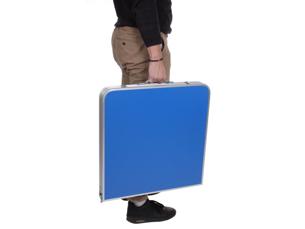 Skládací Table pong 120 je perfektní volbou pro všechny, kdo hledají kompaktní řešení pro stolní tenis na zábavu v malých prostorách – ať už doma, na zahradě nebo při rodinné či firemní akci. Stůl má rozměry 120 x 60 cm a nabízí nastavitelnou výšku na 54, 61 nebo 70 cm, což zaručuje pohodlné přizpůsobení pro všechny věkové kategorie. Díky lehké, ale pevné konstrukci z hliníkové slitiny a odolné plastové desce je velmi snadno přenosný a skladný. Součástí balení jsou také nezbytné doplňky: síťka v plastových držácích, dvě jednoduché pálky s základním potahem a tři míčky uložené v stahovacím síťovaném obalu. Snadná příprava na hru Příprava stolu trvá jen pár minut. Stačí rozevřít pojistné spojky na boku složeného stolu, rozložit podstavec a stůl zajistit pojistnými spojkami na středu. Výšku nastavíte vysunutím podstavce a upevněním kovových kolíků. Síťku jednoduše upevníte jedním držákem na středu stolu, vyrolujete ji přes celou šíři stolu a připevníte druhý držák. Upozornění: - mini stůl Table pong 120 není vhodný pro děti do 3 let - na stůl se nesmí pokládat žádné předměty Parametry: Rozměry rozloženého stolu: - rozměr desky stolu: délka x šířka x tloušťka: 120 x 60 x 3 cm - výška stolu - nastavitelná do 3 poloh: 54/61/70 cm Rozměry složeného stolu: - délka x šířka x hloubka: 62 x 60 x 6,5 cm Rozměry držáků a síťky: - držáky: výška x šířka x hloubka: 17 x 7 x 5 cm – určeno pro maximální tloušťku desky stolu 4,5 cm - síťka rolovací: výška 15 cm, možnost roztáhnutí až na max. délku 140 cm Váha stolu bez síťky s držáky: 4 kg Materiál: - deska stolu: plast ABS - konstrukce stolu: hliníková slitina - držáky, síťka: plast PP,PE - pálky: topolové dřevo, gumový potah - míčky: plast Obsah balení: - rozkládací stůl - 2 x držák s narolovanou síťkou - 2 x pingpongová pálka - 3 x pingpongový míčekDoplňkové parametry