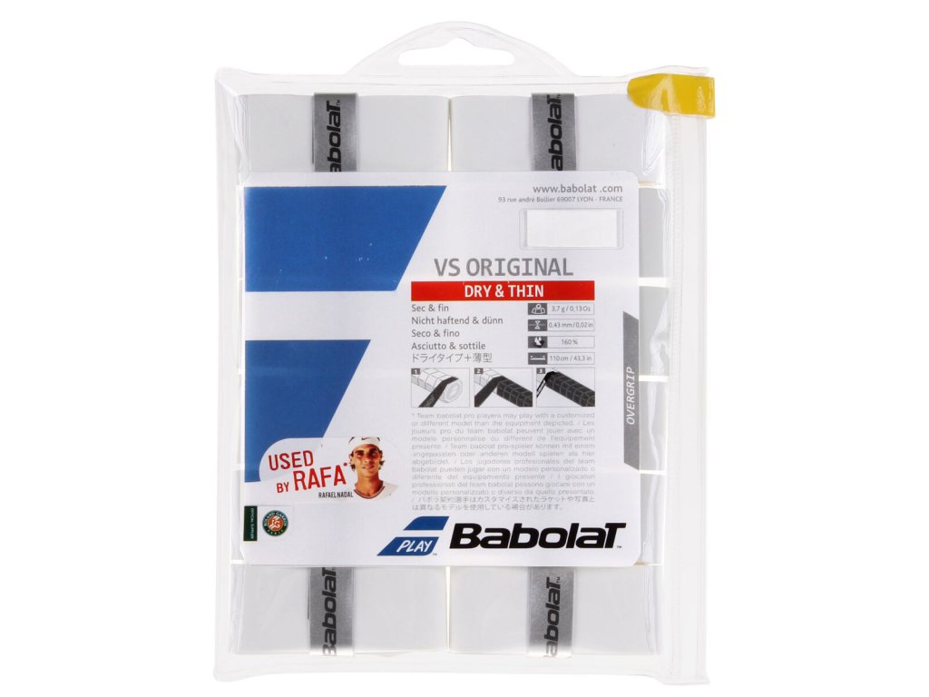 Extra tenký, citlivý a suchý overgrip, Babolat VS Original používá Rafael Nadal. Tenká netkaná vrstva uvnitř omotávky umožňuje velmi rychlou absorpci potu. Díky tomu budete moci hrát každý bod s plnou jistotou, protože víte, že vám raketa nevyklouzne z ruky. Při vývoji jednoho z nejtenčích a nejsušších overgripů dbal Babolat na to, abyste s modelem VS Original ucítili každý obrys gripu vaší rakety. - síla: 0.43 mm - netkaná textilie 100% PET - absorpční úroveň: 4/5 - balení 3 ksDoplňkové parametry