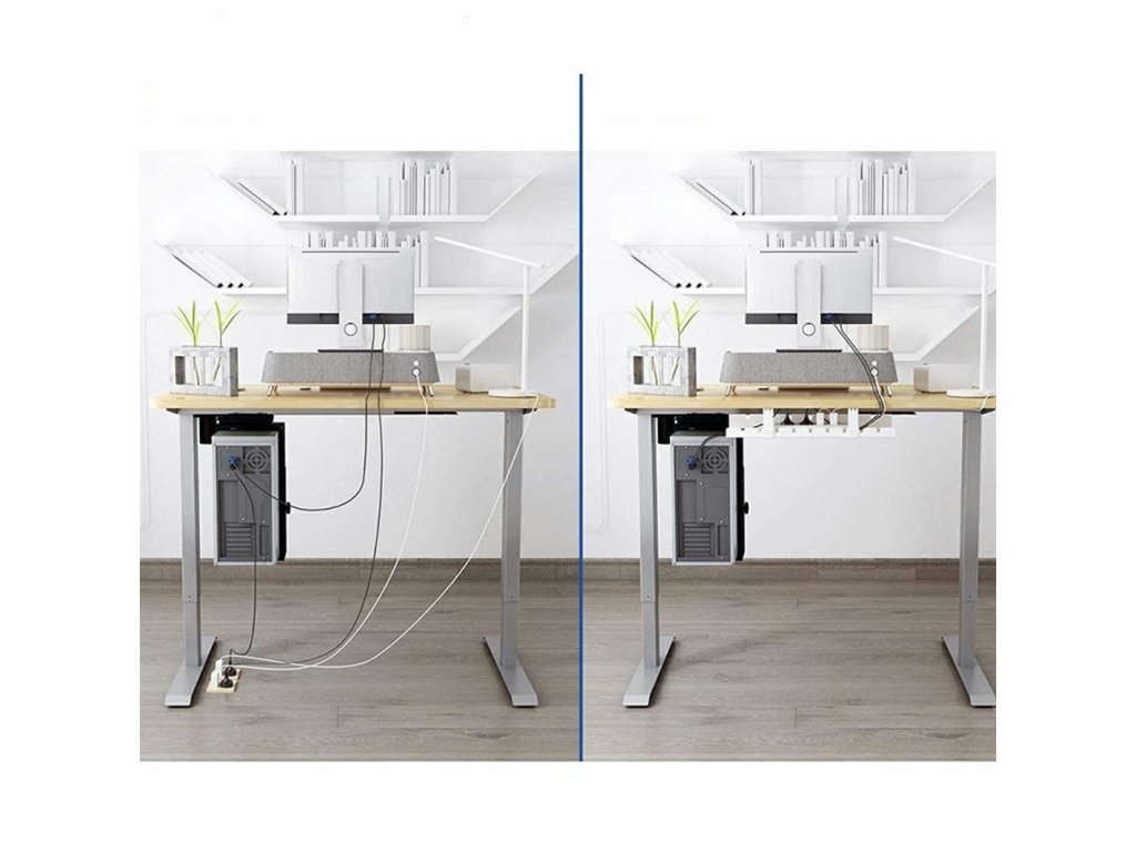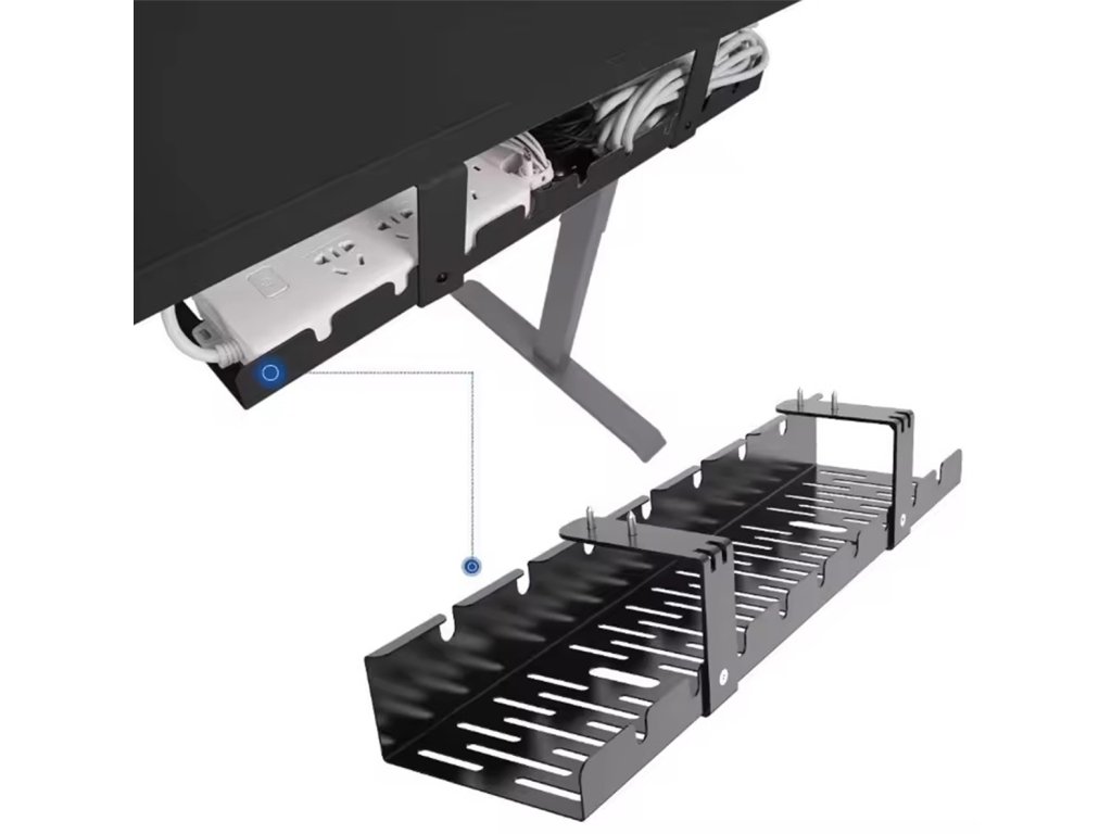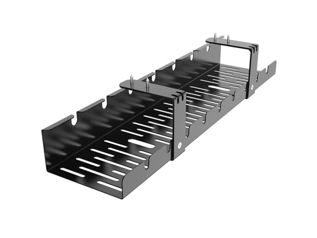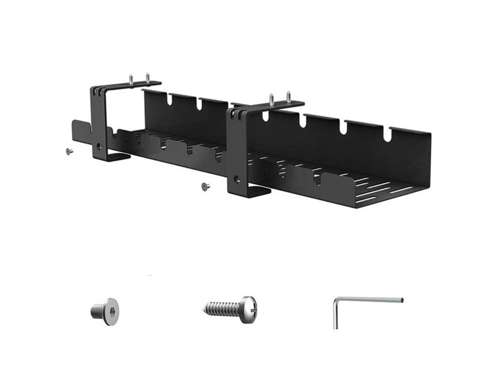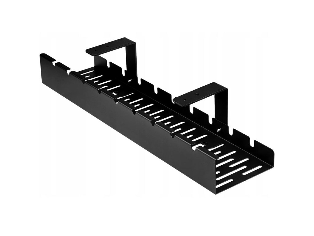 Závěsný organizér na kabely - určený k zavěšení pod stůl. Police se k desce stolu připevňuje pomocí přiložených šroubů. Organizér má ve spodní části větrací otvory, které zabraňují zahřívání pásků a kabelů. Speciální výřezy na přední a zadní straně usnadňují protažení kabelů. Vyrobeno z masivní nerezové oceli (s práškovým nástřikem), což zaručuje dlouhou životnost.