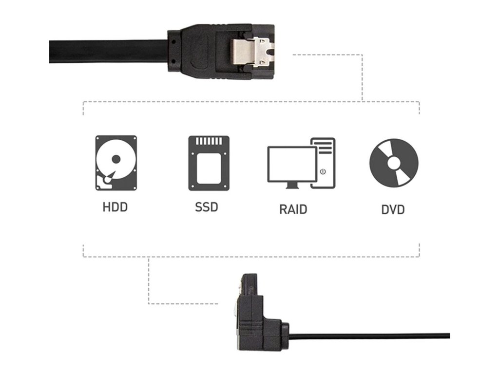 - Standardní úhlový kabel SATA III o délce 45 cm