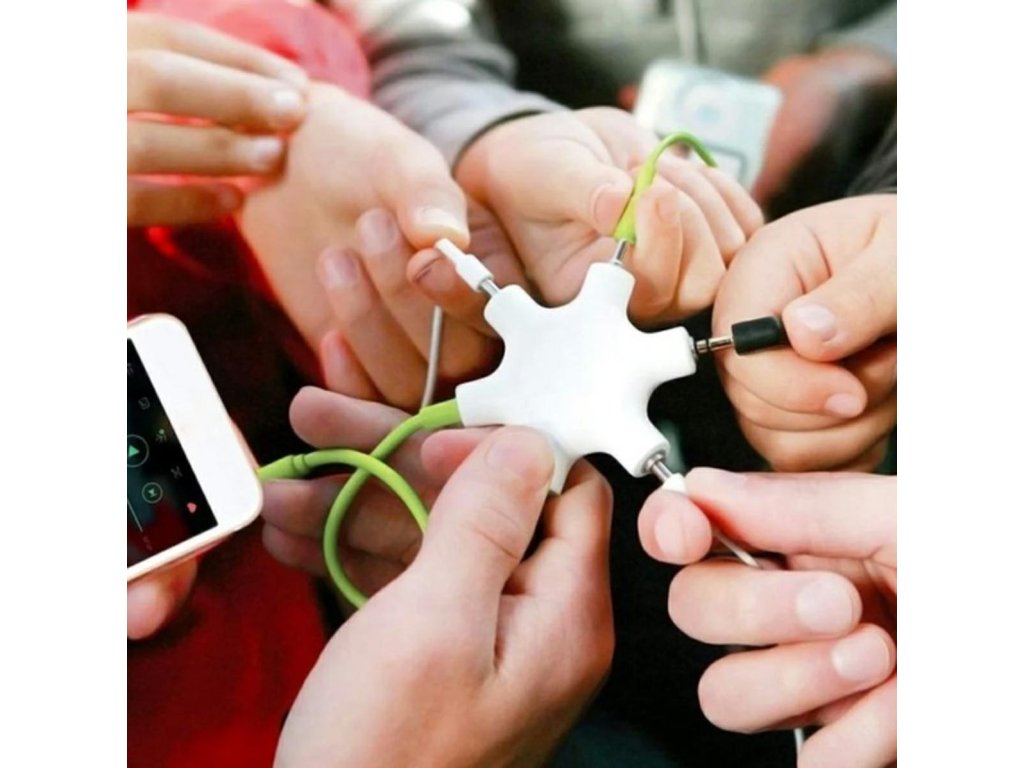 Unikátní rozbočovací adaptér pro sdílení hudby až s dalšími čtyřmi přáteli, celkem pět portů pro připojení sluchátek, jedno pevné připojení pro přehrávač MP3, směšování a prolínání hudby se ovládá prostřednictvím standardního ovládání zařízení, 3,5 mm sluchátkový výstup, vhodné i pro iPod, telefon, tablet.