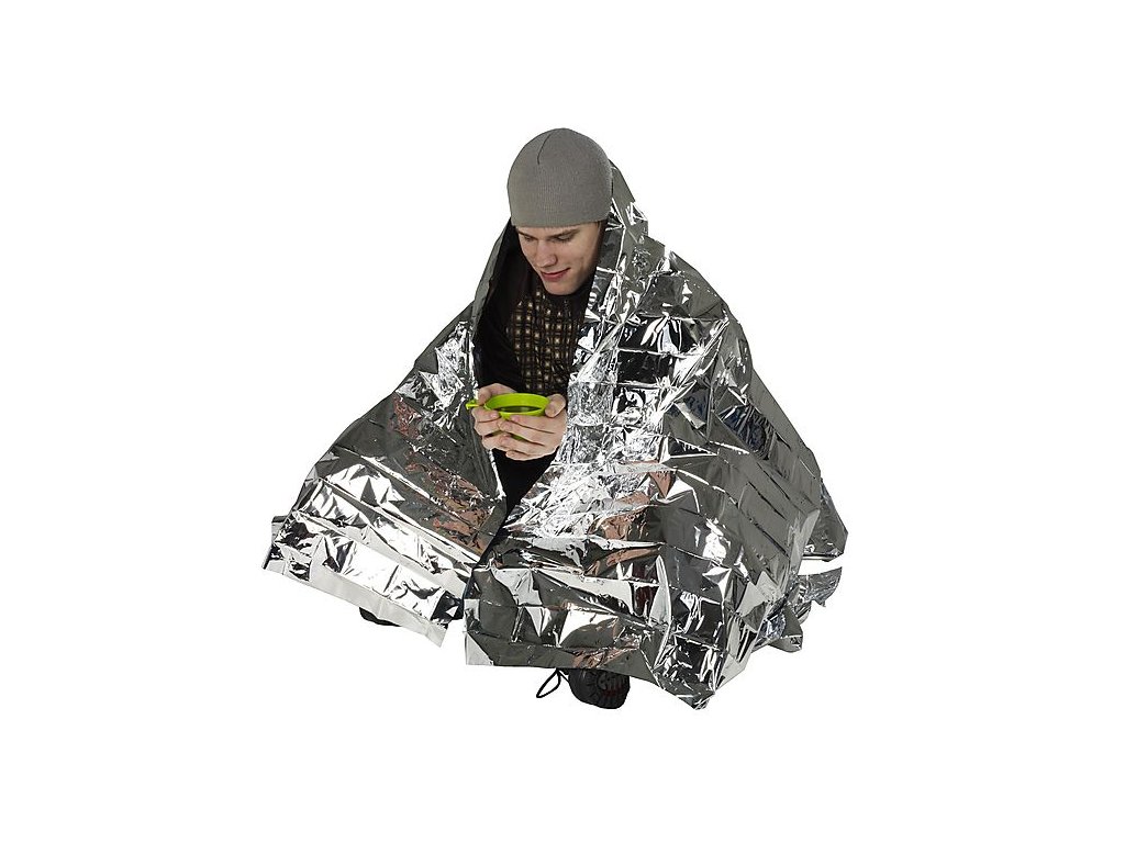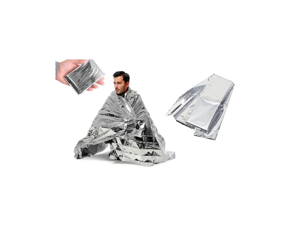 Záchranářská termická deka zhotovená z vysoce kvalitní stříbrné fólie, používaná v záchranářství, turistice, horolezectví, tísňových situacích nebo extrémních podmínkách.