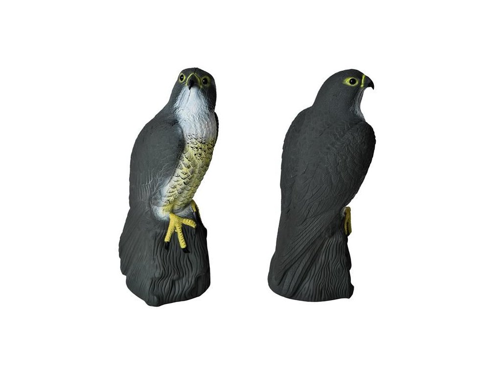 Imitace sokola v životní velikosti dokonale plaší ptáky. Ve spodní části se nachází odnímatelný špunt, který slouží k naplnění pískem, pro lepší stabilitu.