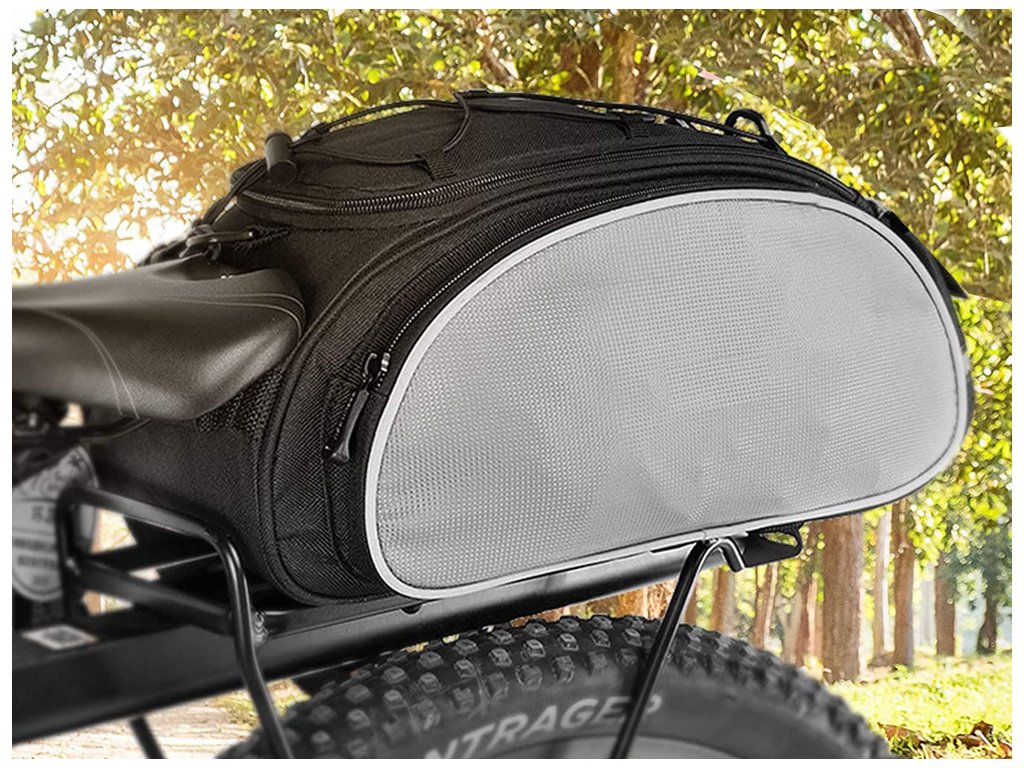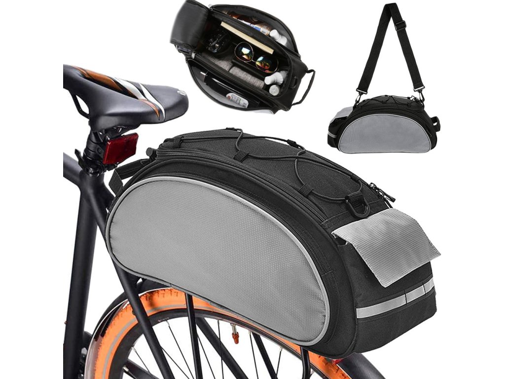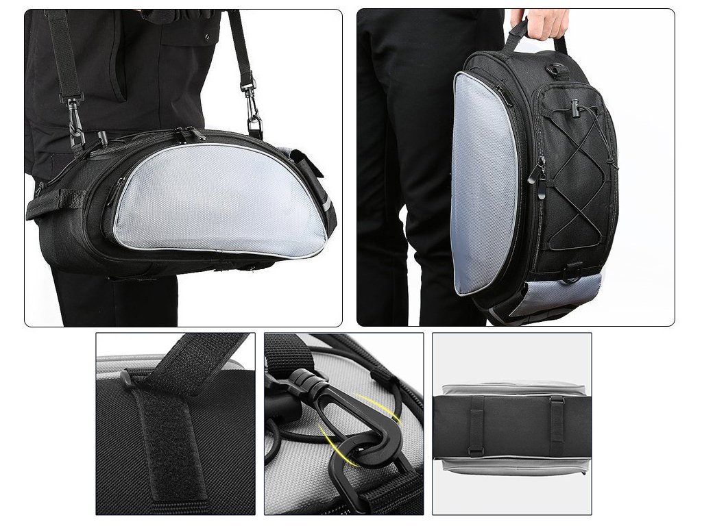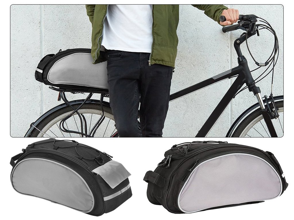 Multifunkční brašna na kolo připevnitelná na nosič kola. Mimořádně užitečná na delší výlety na kole, můžete do ní zabalit oblečení, drobnosti, potraviny. Vyrobeno z vysoce kvalitních materiálů.