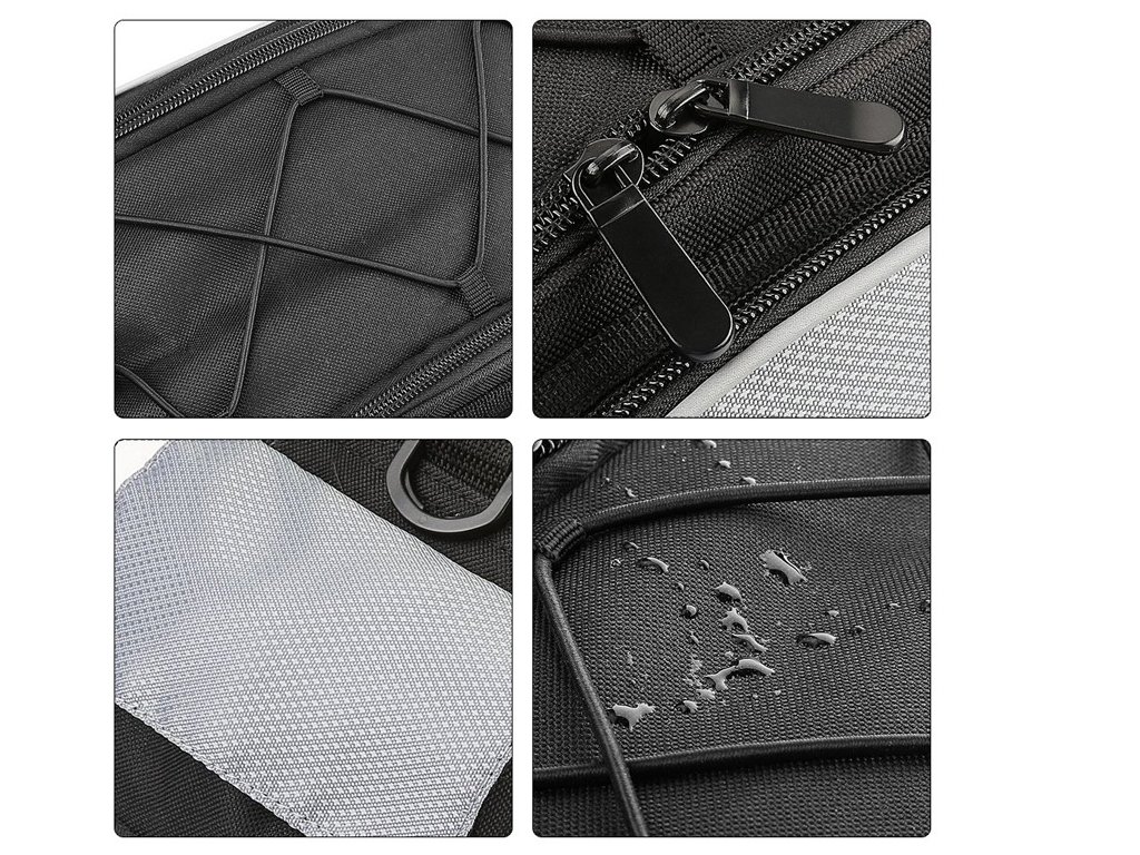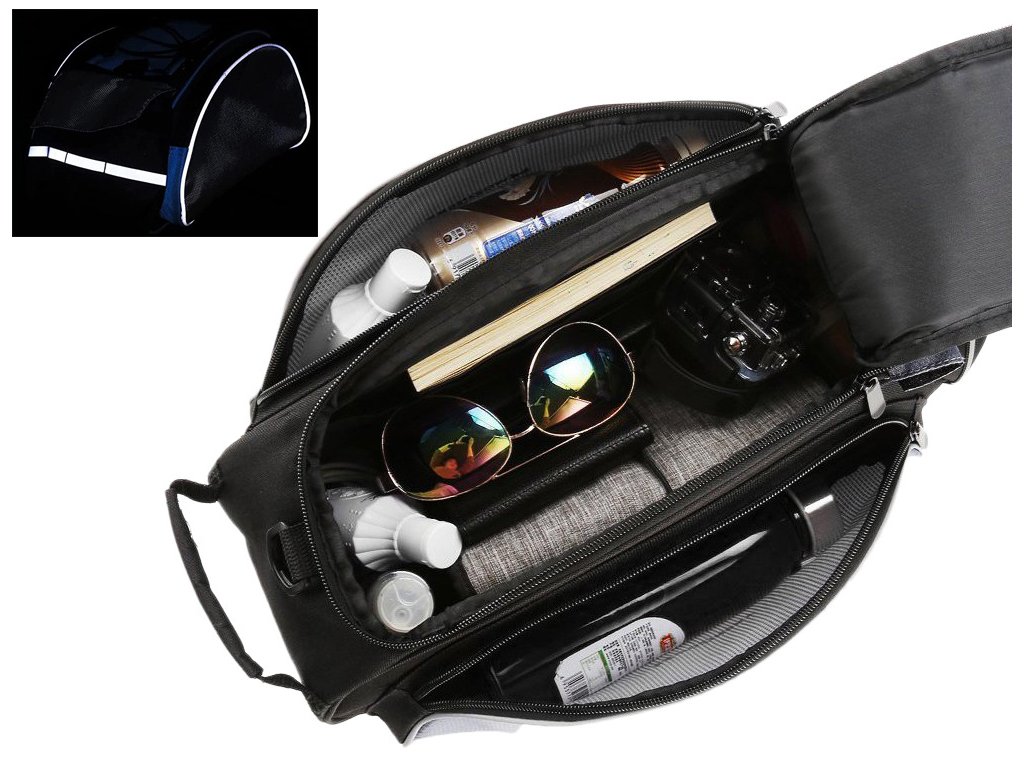 Taška je lemována reflexním proužkem pro větší bezpečnost při cestování. Univerzální taška je vhodná pro většinu typů nosičů, zapíná se pomocí nastavitelných přezek.