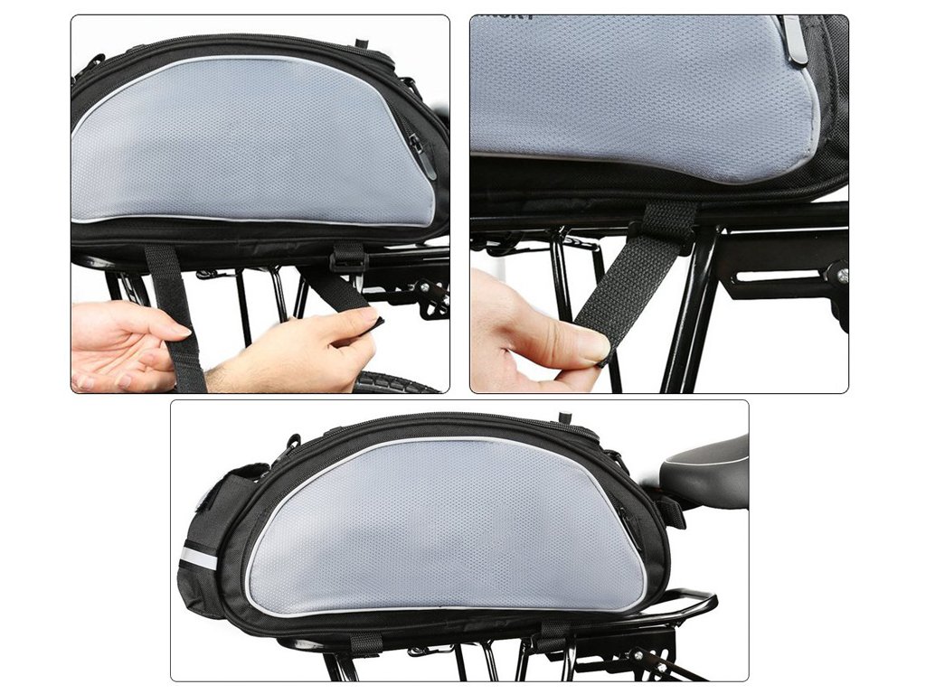✅ Připevňuje se k nosiči kol pomocí popruhů a přezek
