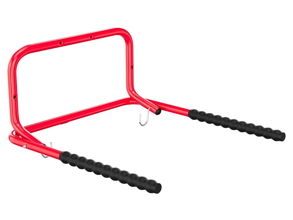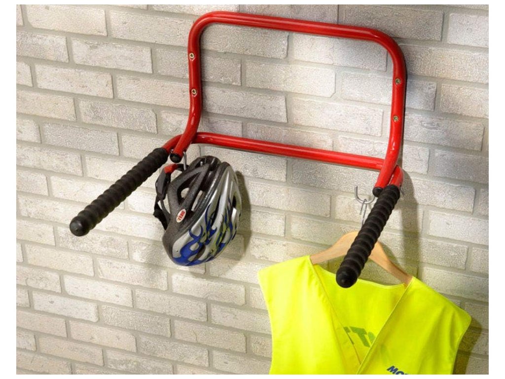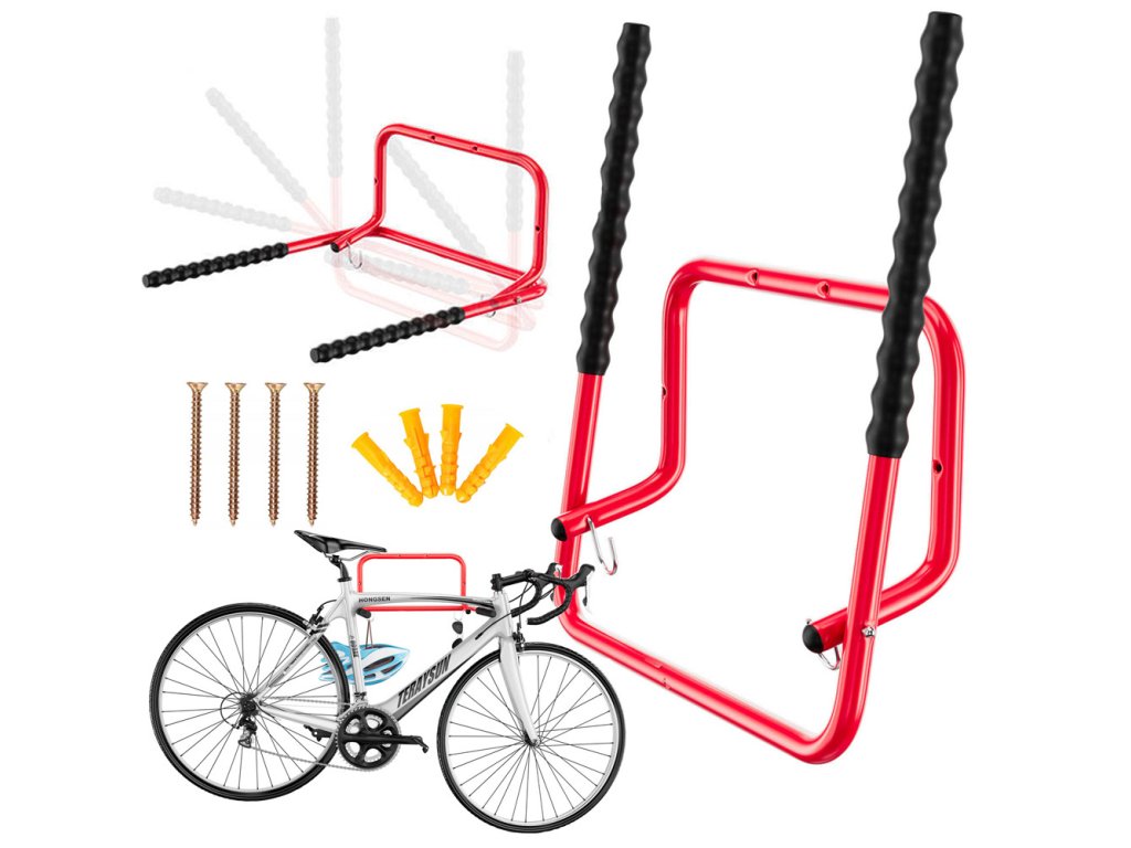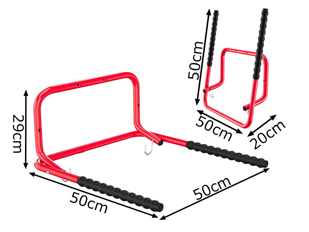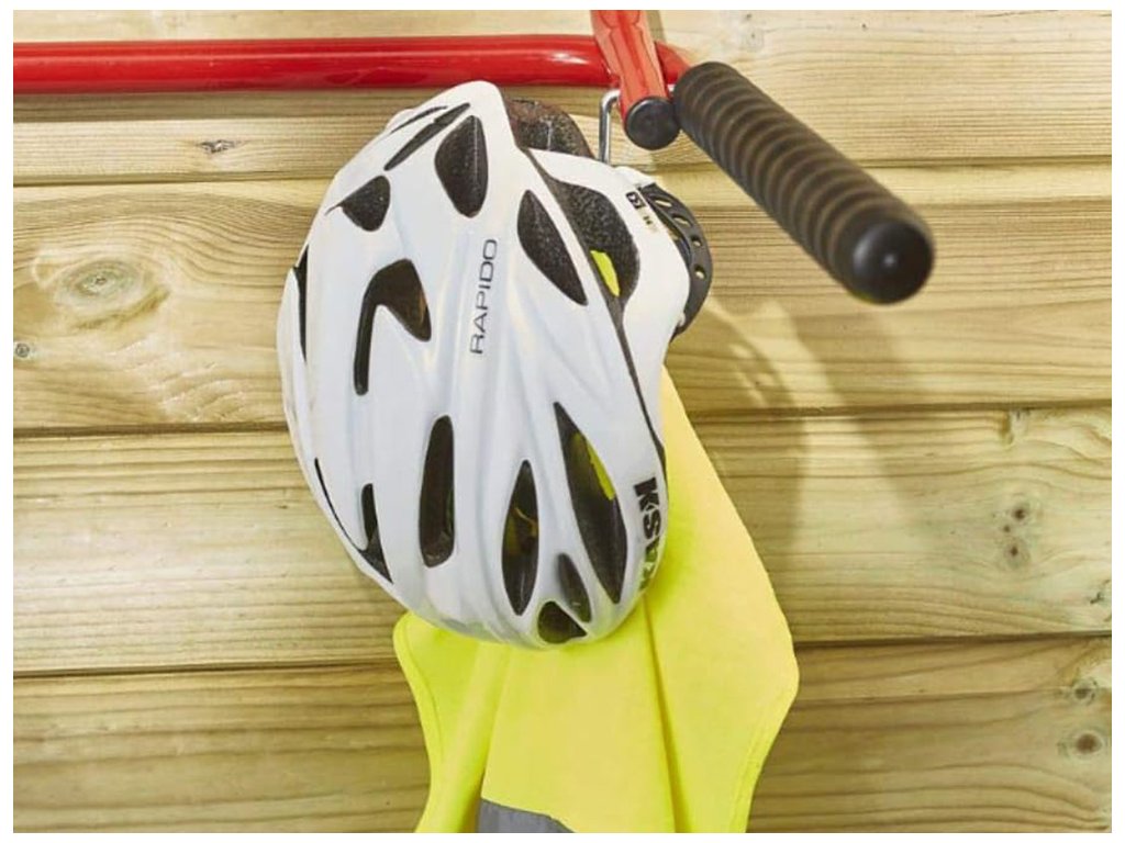 Věšák je navíc vybaven dvěma praktickými háčky, na které lze zavěsit přilby, brašny nebo jiné cyklistické příslušenství. Díky robustní kovové konstrukci v kombinaci s promyšleným designem je věšák ideální do garáže, sklepa nebo na balkon. nepostradatelná součást vybavení pro každého milovníka jízdních kol, který si cení pořádku a bezpečného uložení.