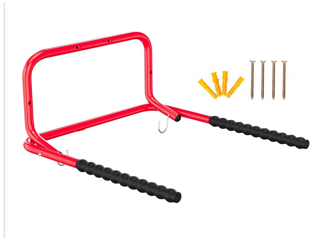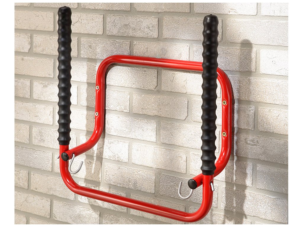Skládací věšák na kola je ideálním řešením pro ty, kteří hledají pohodlný a prostorově úsporný způsob uložení svých kol. Věšák se připevňuje ke zdi pomocí čtyř robustních kolíků, které zajišťují stabilitu a bezpečnost. Díky své vysoké pevnosti pojme věšák dvě jízdní kola s maximální kombinovanou hmotností 60 kg. Speciální kryty na ramenech chrání rám kola před odřením a skládací konstrukce šetří místo, když se věšák nepoužívá.