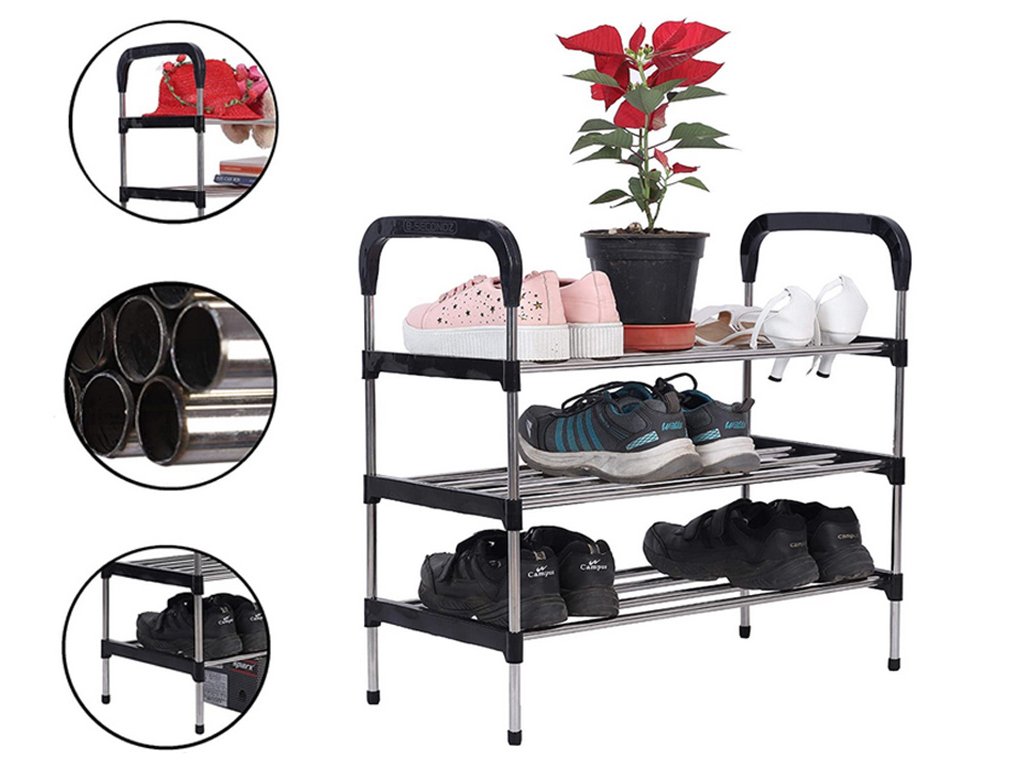 Víceúrovňový regál na boty je velmi lehký a stabilní. Ideální do firmy, obchodu, kanceláře i domácnosti. Pojme až 12 párů bot.