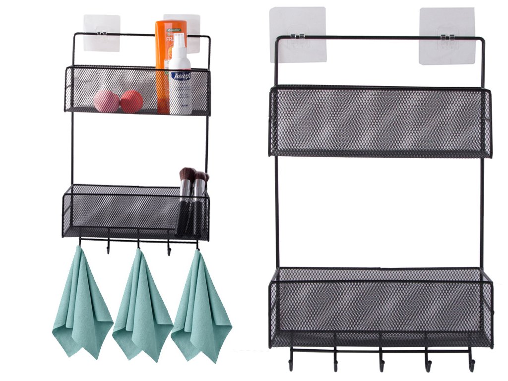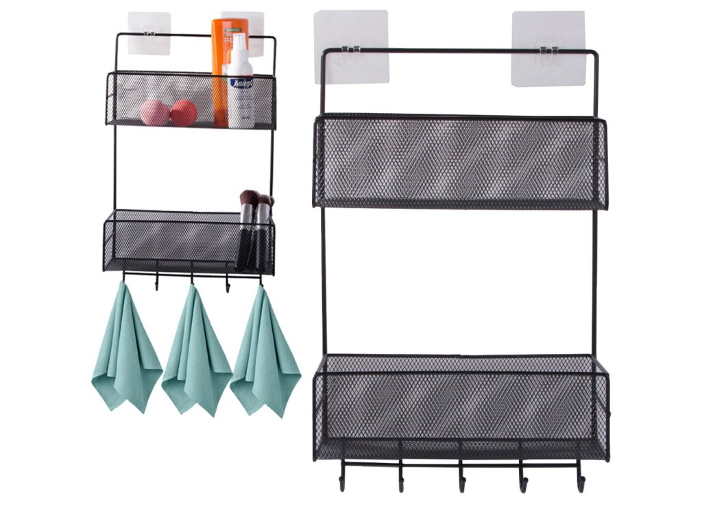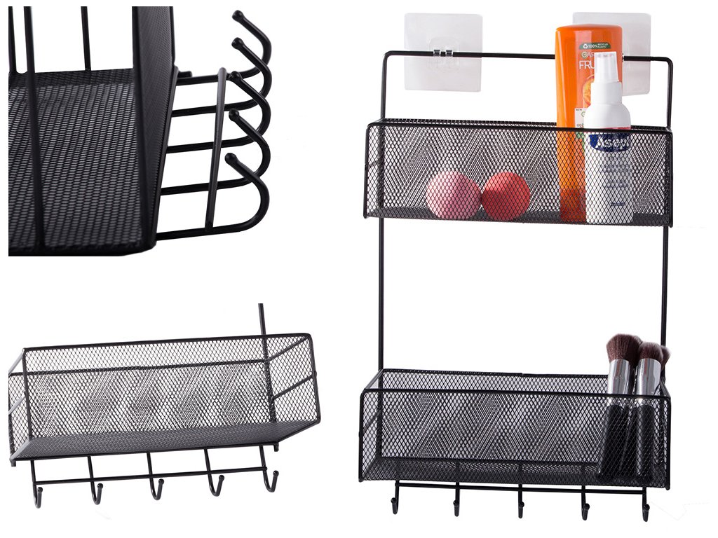 KOVOVÝ ORGANIZÉR ZÁVĚSNÁ POLICE KUCHYŇ KOUPELNA VĚŠÁK ČERNÁ