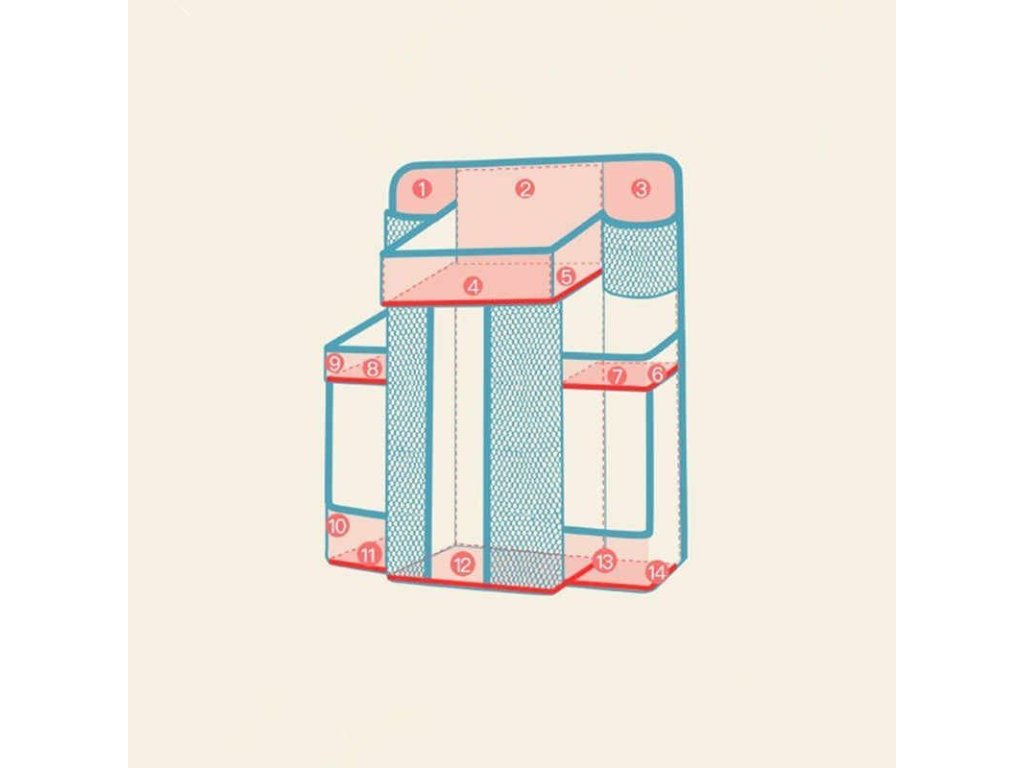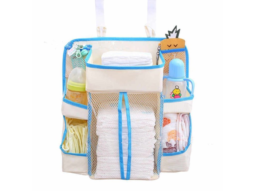Organizér, který musíte mít. Má velké množství úložného prostoru, který jistě upotřebíte. Zjednodušte si přebalování a uspořádejte si veškeré potřebné věci na jedno místo. Lámete si hlavu s tím, zda bude pasovat právě na Vaši postýlku? Nemusíte, organizér nabízí více možností uchycení - pomocí háčků, nebo úchytů na zip a dokonce ho můžete s použitím oček zavěsit také na zeď.