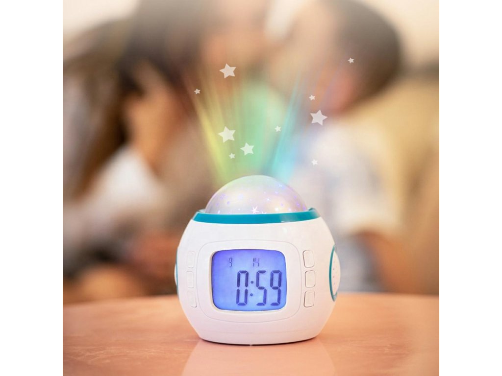Budík „Night Sky“ s projektorem a přehrávačem melodií je zařízení, které si můžete oblíbit. Zpříjemní vám ranní probuzení – přehrávaná melodie, světlo a barvy mají velký vliv na naši náladu. Kombinace těchto prvků může zlepšit vaši pohodu po zbytek dne.