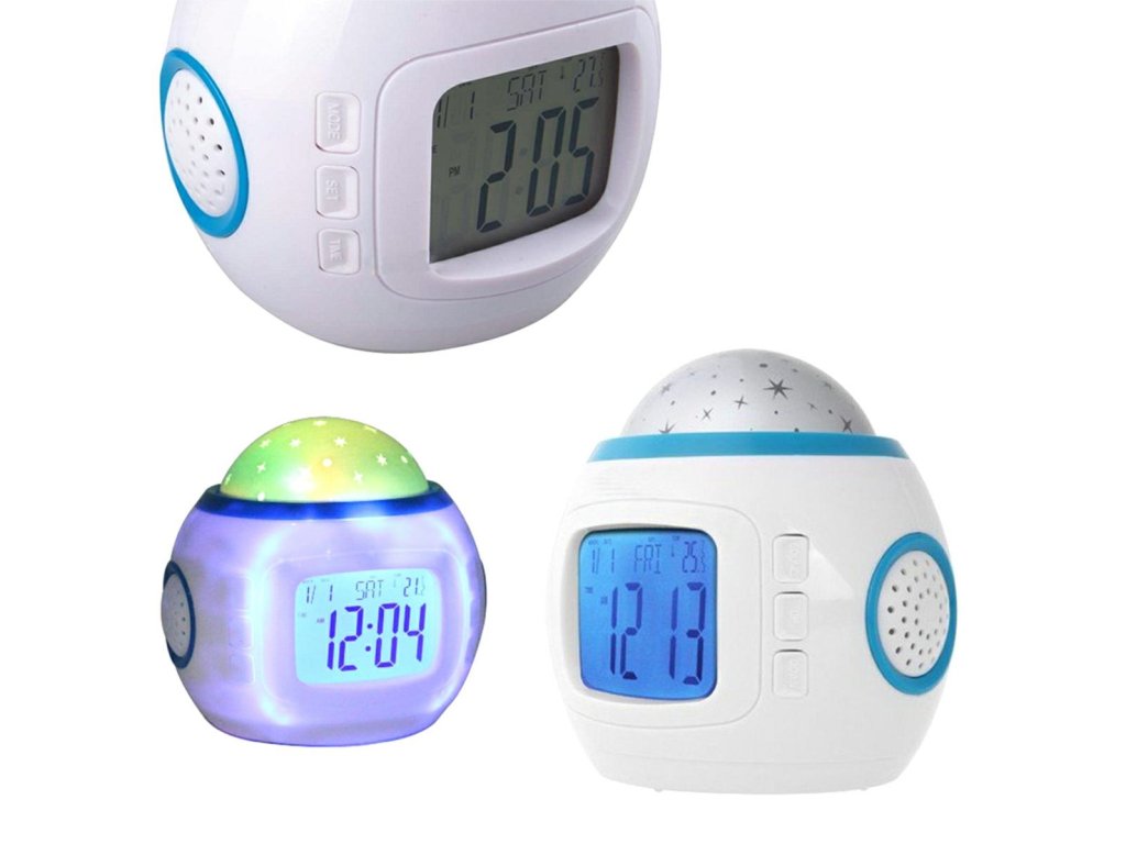 - Budík, který v místnosti zobrazuje barevnou projekci hvězdné oblohy, jež se mění do rytmu přehrávané melodie.