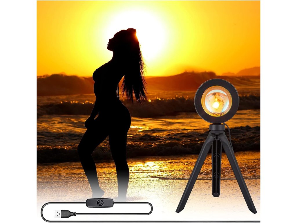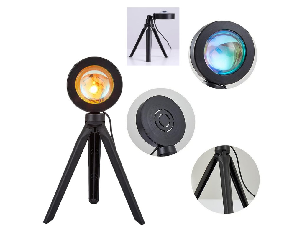 Kompaktní LED svítidlo imitující západ slunce. Perfektní sada osvětlení pro každého nadšence interiérové fotografie. Nezbytné vybavení každého domácího fotoateliéru. Hlava lampy je plně nastavitelná nahoru a dolů (180 stupňů). Stabilní základna v podobě stativu (stativu) zabraňuje nechtěnému převrácení svítilny. Použití energeticky úsporných LED diod nevyžaduje napájení ze sítě, stačí běžný USB port nebo powerbanka.