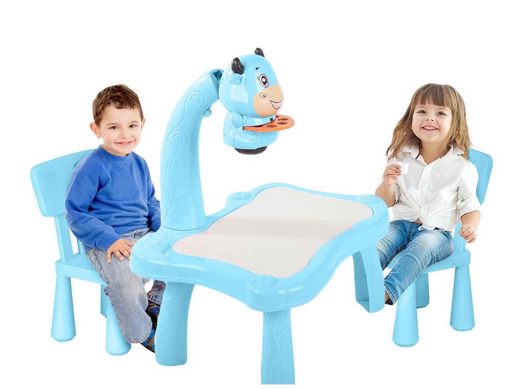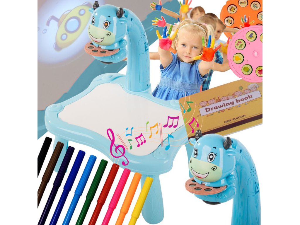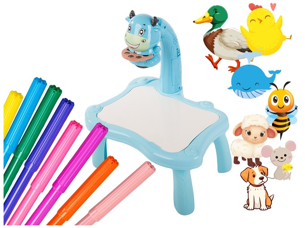 PROJEKTOR ZPĚTNÝ PROJEKTOR KRESLÍCÍ STŮL TABULE FIXY PRO DĚTI FIXY KRESLÍCÍ STŮL VZDĚLÁVACÍ PROJEKTOR MODRÝ