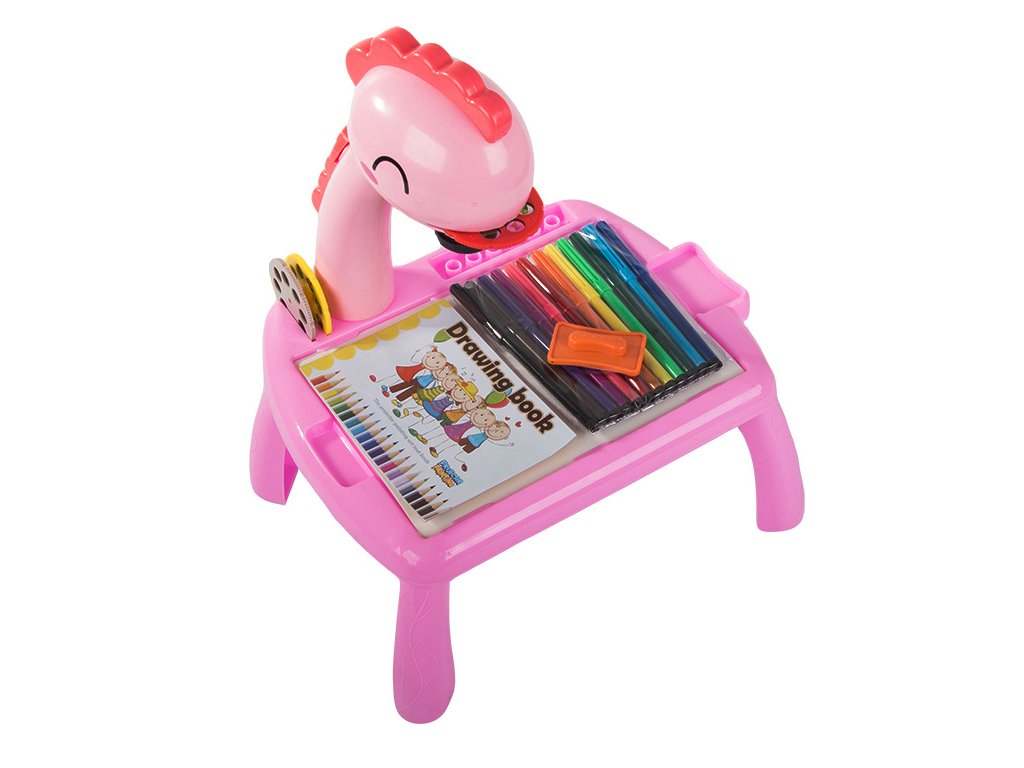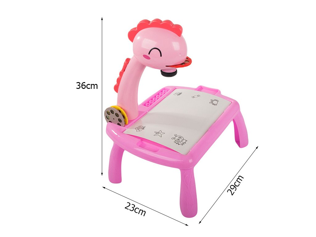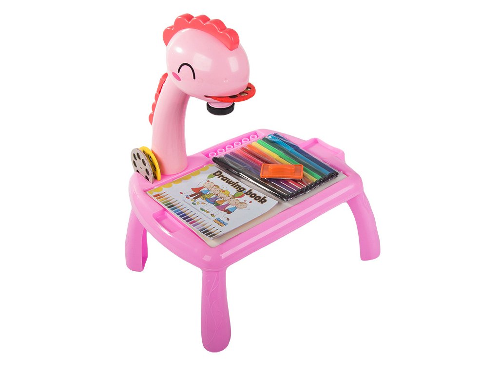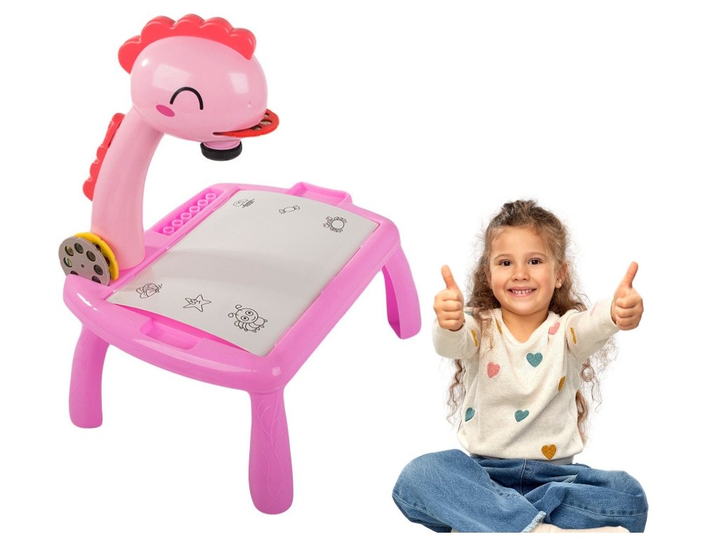 Kreslící stůl s projektorem a příslušenstvím, růžový dinosaurus
