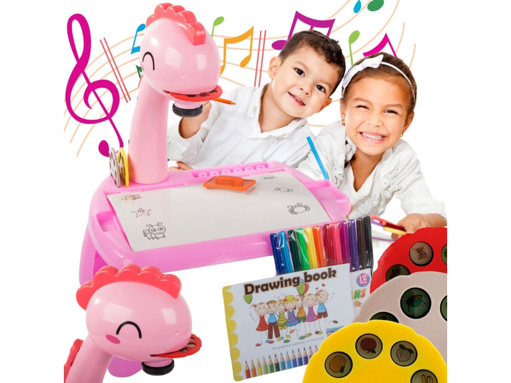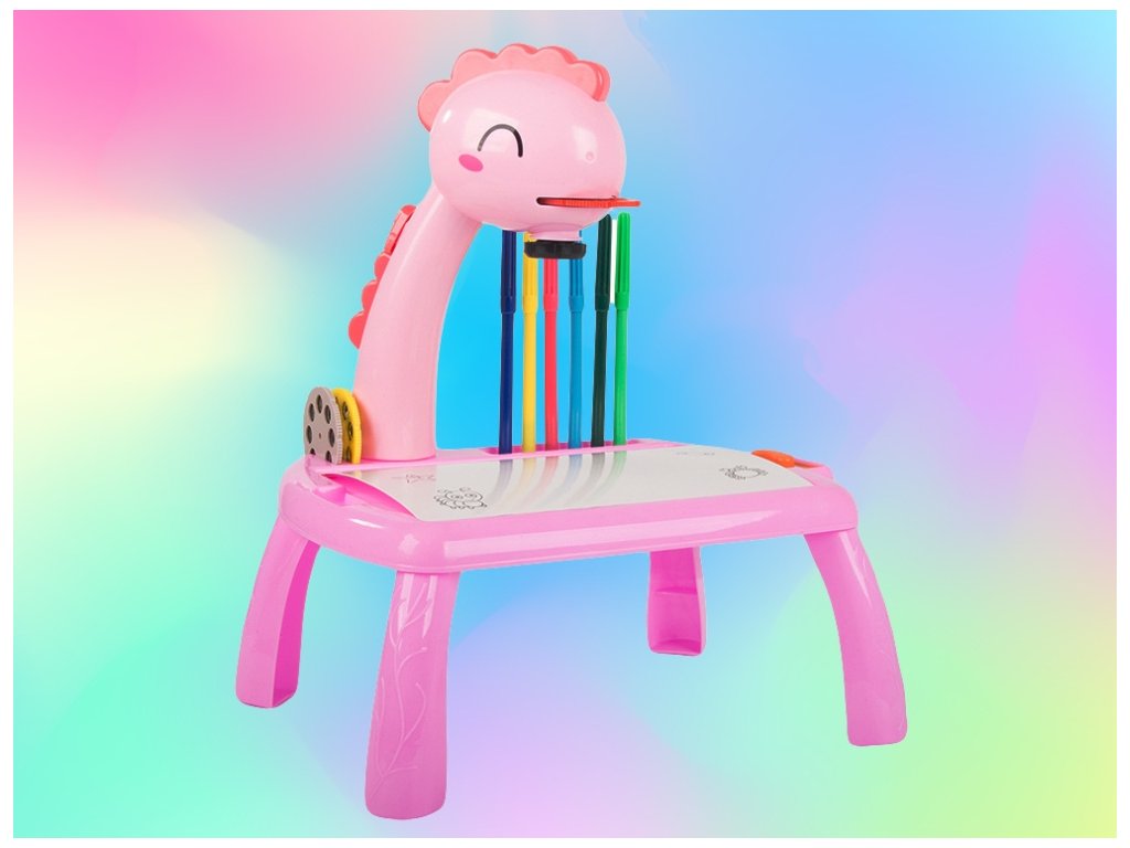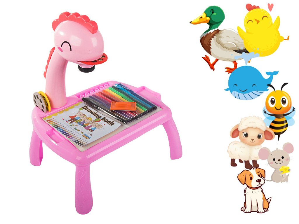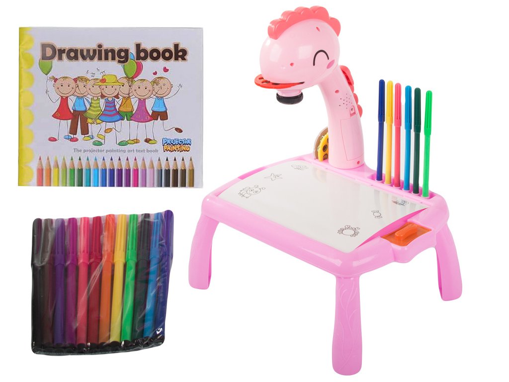 Kreslící stůl s projektorem a příslušenstvím, růžový dinosaurus