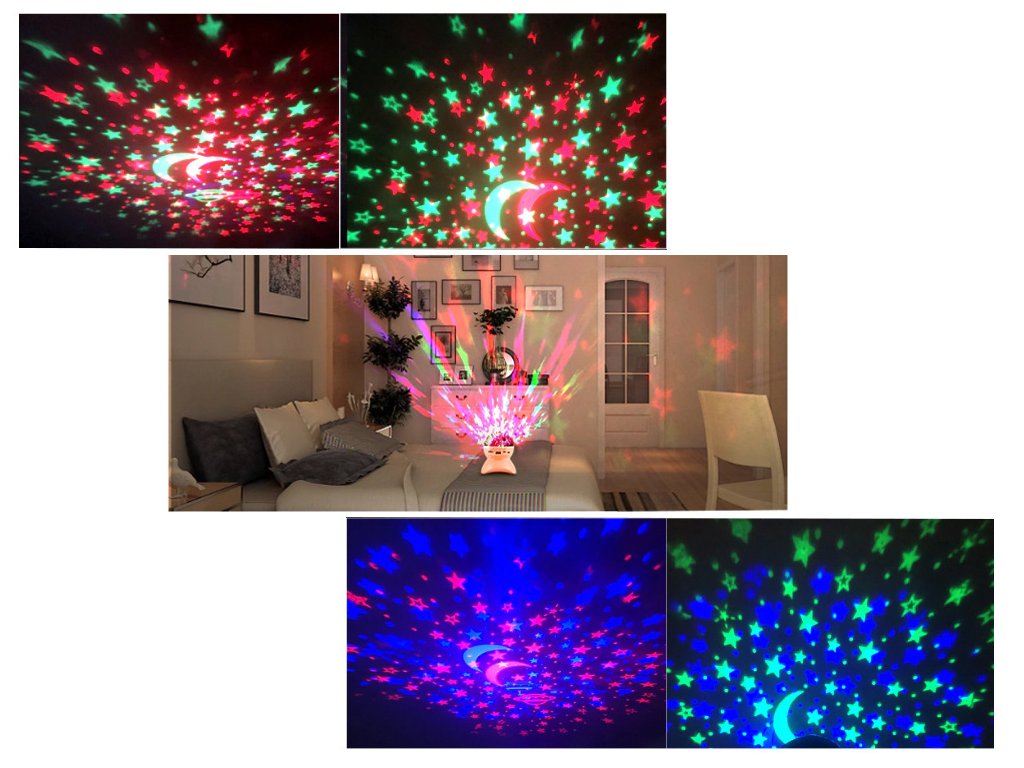 Projektor je dokonalou dekorací do vašeho bytu , zejména do dětského pokoje. Lampa vytváří úžasné obrazce na stěnách stropu a oknech. Dokonale reprodukuje hvězdnou noční oblohu. Projektor lze použít jako noční světlo i jako hudební přehrávač.