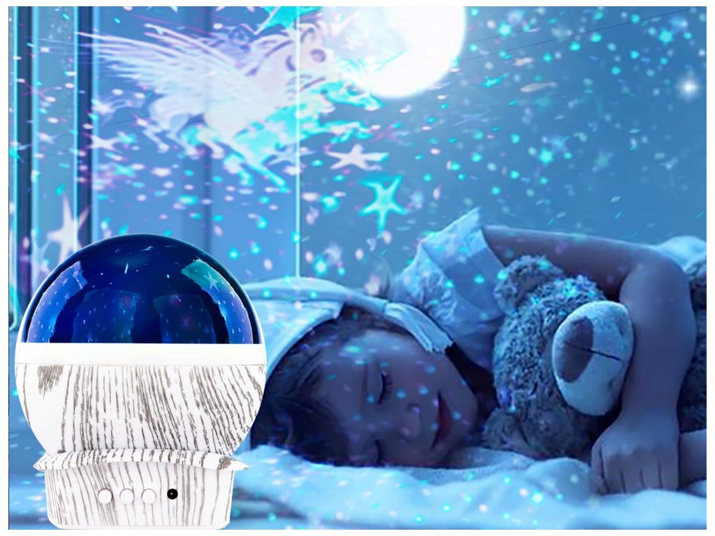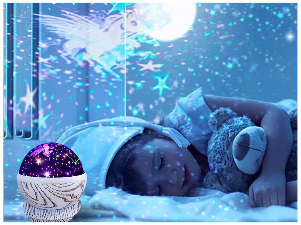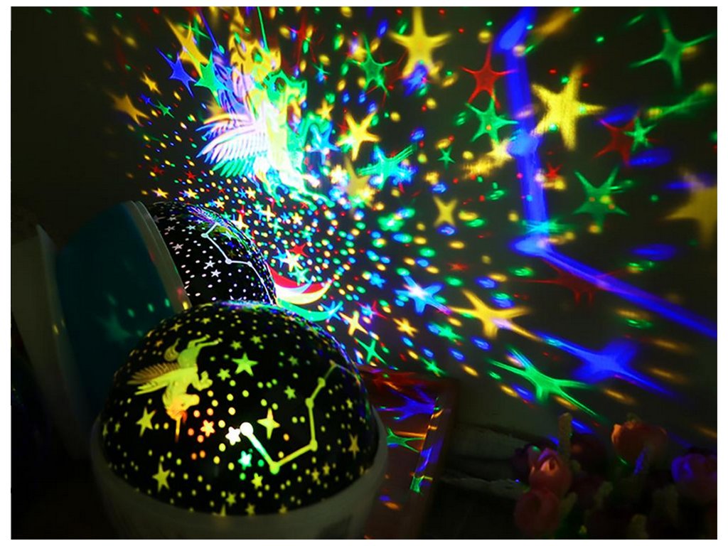 Hvězdný projektor je ideální dekorací pro váš domov, zejména pro dětský pokoj. Projektor lze použít jako noční lampičku i jako otočný projektor.