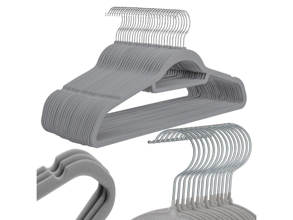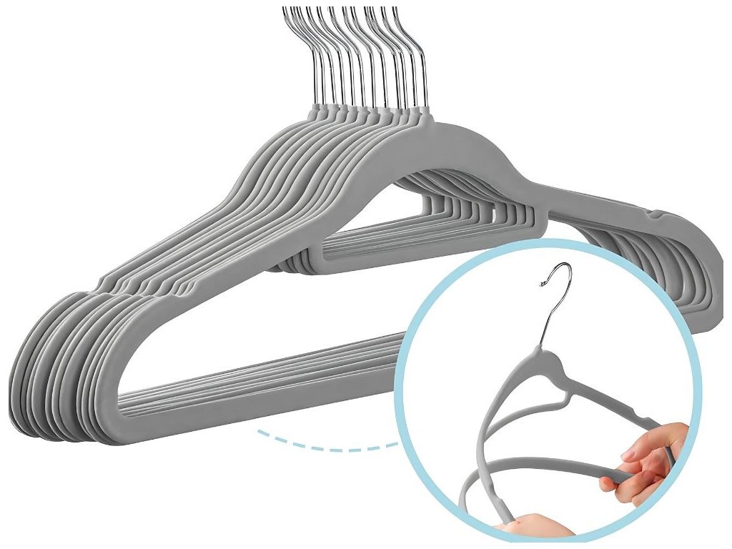 VELUROVÁ RAMÍNKA NA OBLEČENÍ ŠEDÁ PROTISKLUZOVÁ SADA 20 KUSŮ