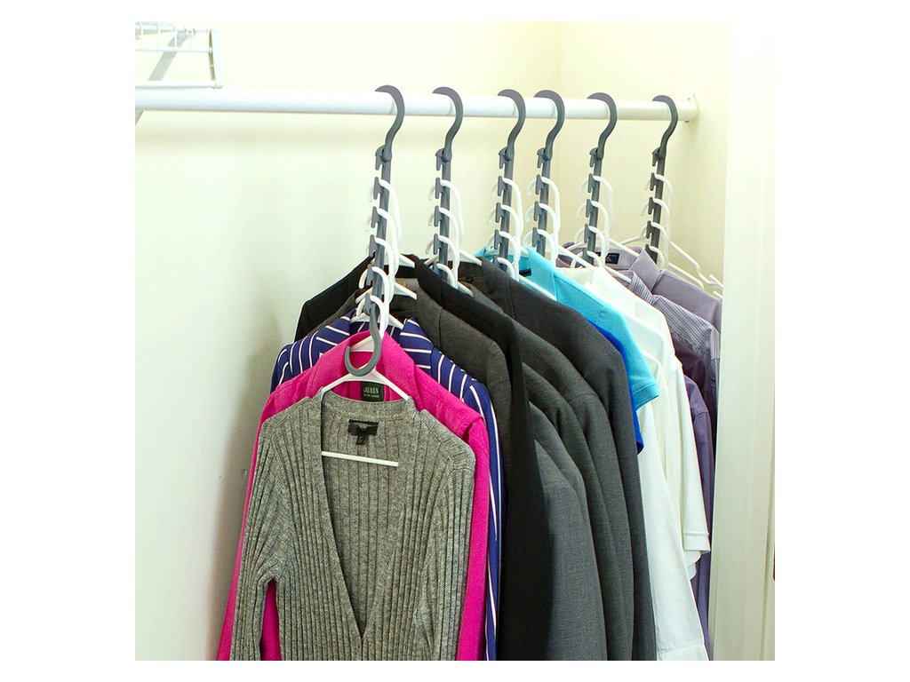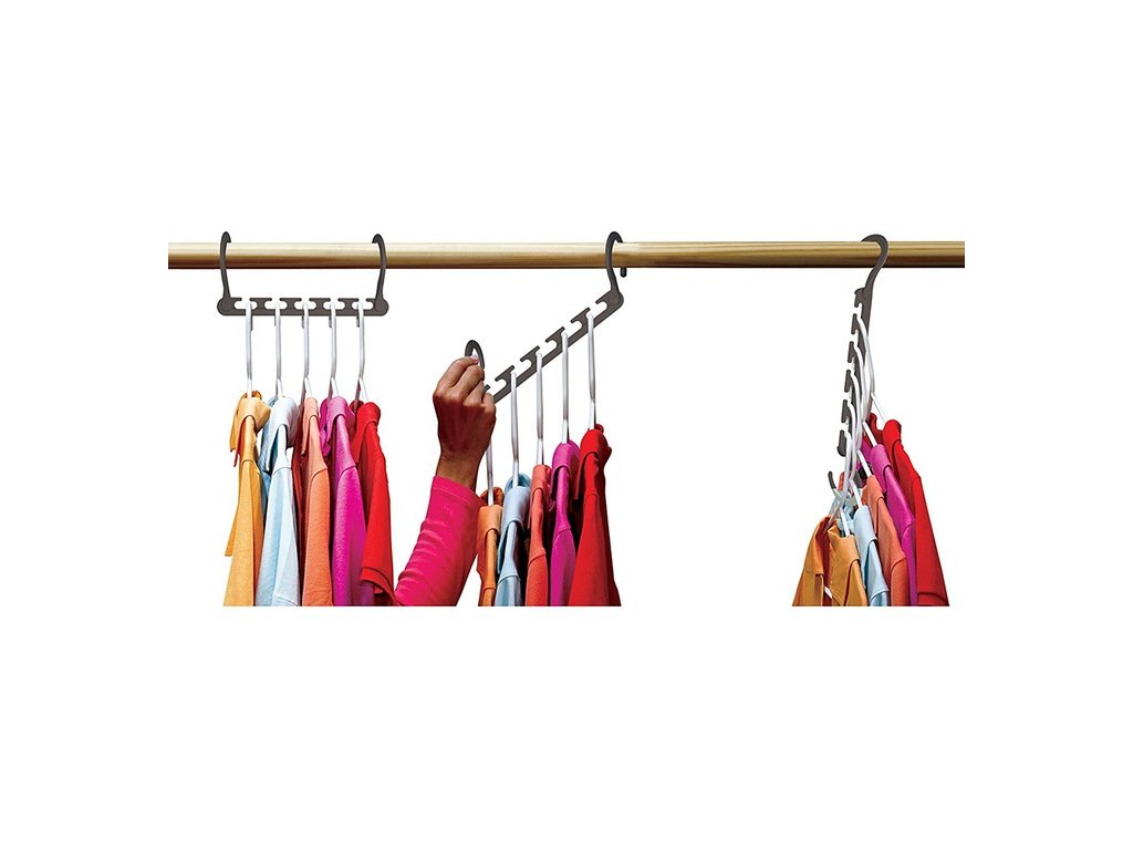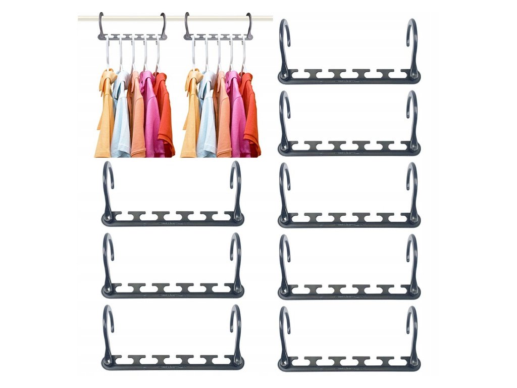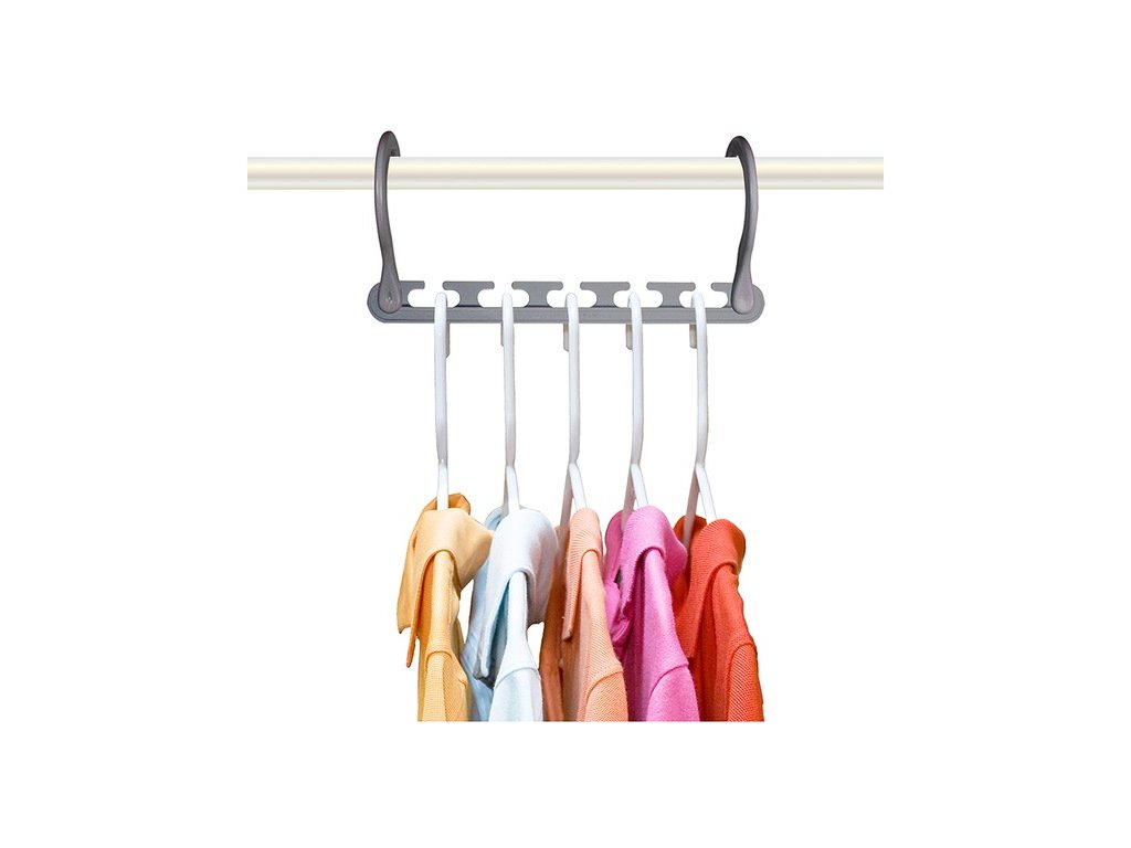 Úsporný věšák na ramínka vytvoří ve vaší skříni více místa, navíc si s jeho pomocí můžete oblečení přehledně uspořádat. Balení obsahuje 8 věšáků, na každý věšák můžete pověsit 5 ramínek. Pokud chcete ušetřit místo, jeden háček z tyče sundejte a nechte ramínka viset sestupně dolů.