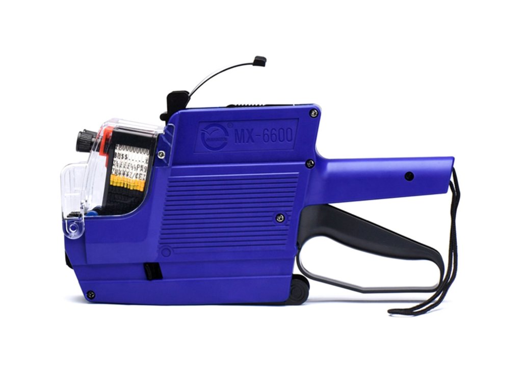 Dvouřadý štítkovač MX 6600 Umožňuje tisk dvou řad štítků současně. Každá značka může mít libovolná čísla (od 0 do 9) a celou řadu potřebných speciálních znaků (velikosti, písmena, symboly měn). Pohodlná, ergonomická rukojeť a přídavné vodítko usnadňují používání výrobku. Sada obsahuje přídavnou vyměnitelnou houbu o průměru 18mm a z výroby implementovanou sadu visaček.